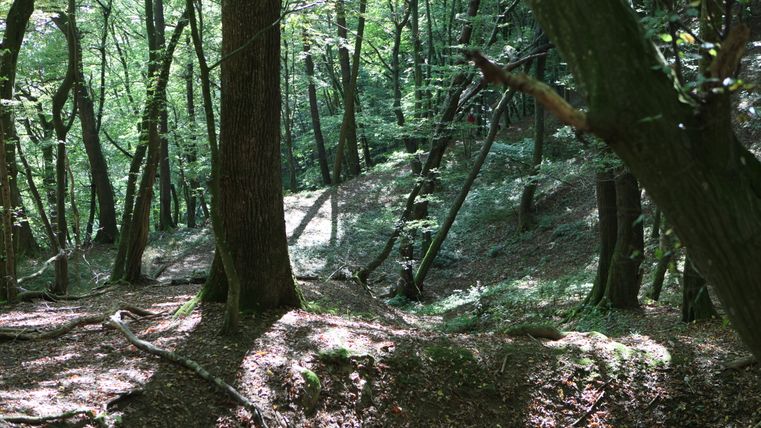 The 14.1 km circular trail takes you along the banks of the Rursee, through the village of Schmidt and back through the Eifel National Park in just over four hours. Along the way, you have a fabulous view of the Rur dam at Schwammenauel. There is a hydroelectric power station at the reservoir, which is used to generate electricity. The power station produces almost 25 million kilowatt hours of electricity per year. The lake has an area of 780 hectares and is one of the largest reservoirs in Germany with a capacity of 203 million m3. If you catch a low-water phase of the reservoir during your hike, you can see the rugged slate cliff that gives the circular hiking trail its name "steep coast".