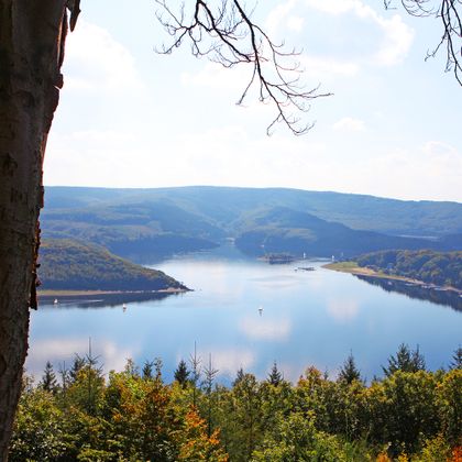 The trail leads along the banks of the Rursee, then up to Schmidt and back through the Eifel National Park with a view of the "Schwammenauel" reservoir.
