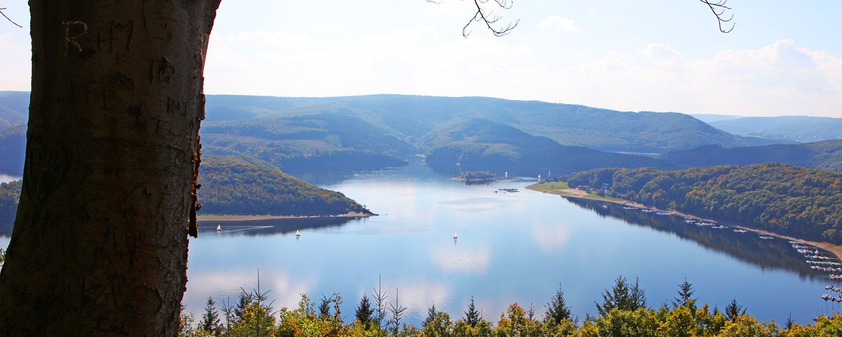 On the Hubertushöhe, the vantage point in the south-east of the Schmidt district, you have a fantastic view over the Rur dam and the Kermeter. The Schöne Aussicht viewpoint on the Simonsley is also nearby.
