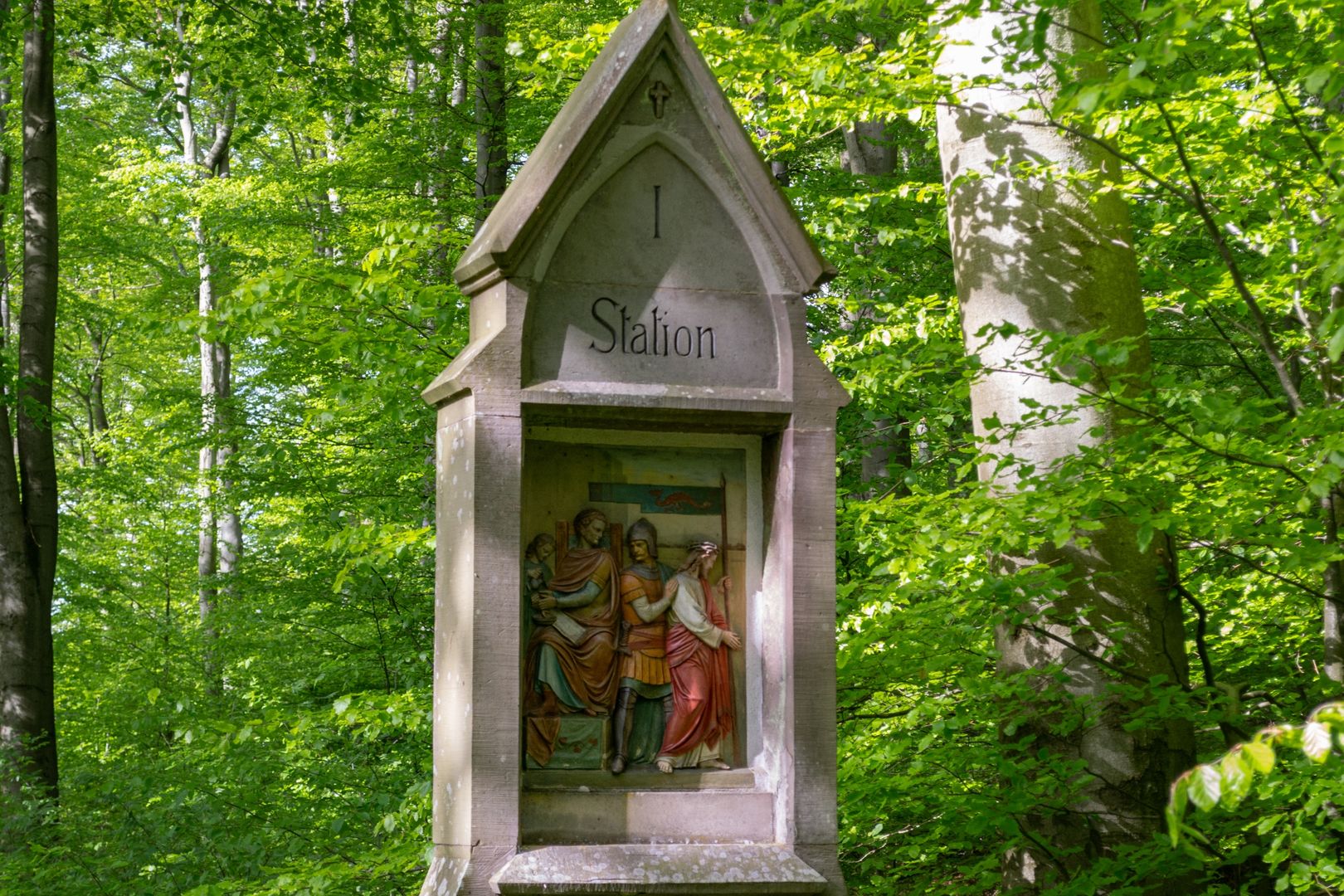 Enjoy the stunning view from the summit over a picnic before heading on up to Michelsberg, which is 568 metres above sea level and literally forms the apex of the trail with its St. Michael pilgrims’ church. The mountain was an important religious site in the era of the Celts, Romans and Teutons. With the arrival of Christianity in Eifel, it was named after the archangel Michael. The Roman Catholic church is a listed building and was erected circa 1500. It's been a destination for many pilgrims since time immemorial. The wooded basalt hilltop Michelsberg is the highest point in the area of Bad Münstereifel. Here, you’ll find a stunning view that's an absolute must-see.