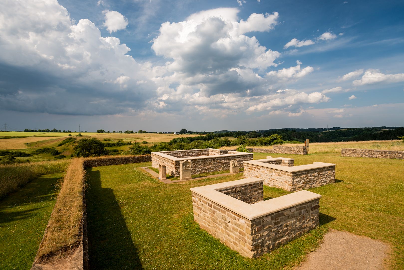 A special point along the way is the partially reconstructed matronly sanctuary "Görresburg", on a hill between Nettersheim and Marmagen. The Roman matrons were worshipped here in Roman times. Even today, one or two offerings to the mysterious goddesses can be found in front of their images on the consecration stones erected in the sanctuary. The temple district is part of the Nettersheim Archaeological Landscape Park, which you can enjoy a wonderful view of from here.