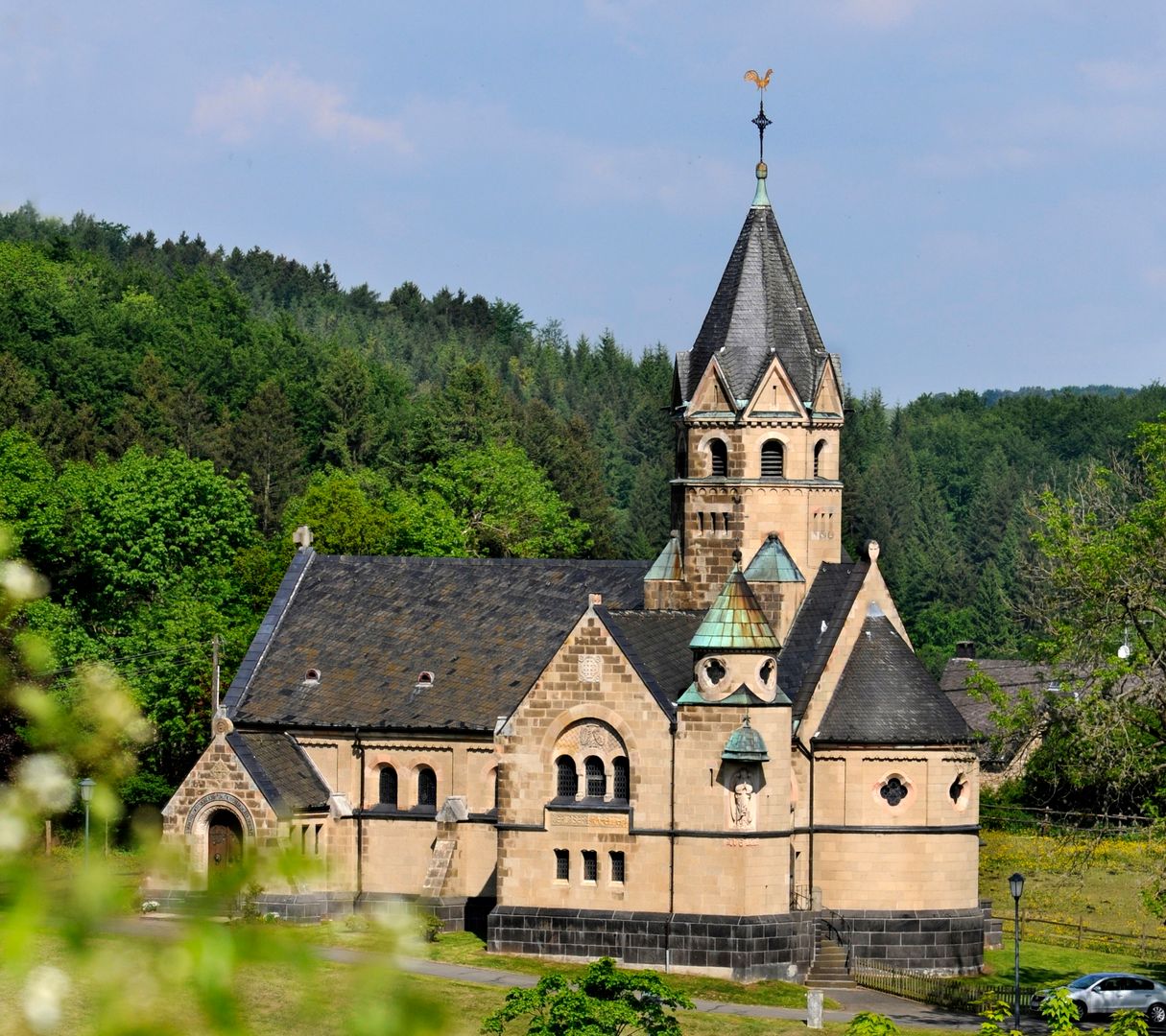 Today, you start your hike at Mirbach’s impressive Chapel of the Redeemer - have another quick look and take in the golden mosaic before you head off. Soon you are following narrow forest paths and routes along fields and meadows. The open view already gives you some initial views of the volcanic landscape of the Eifel.
