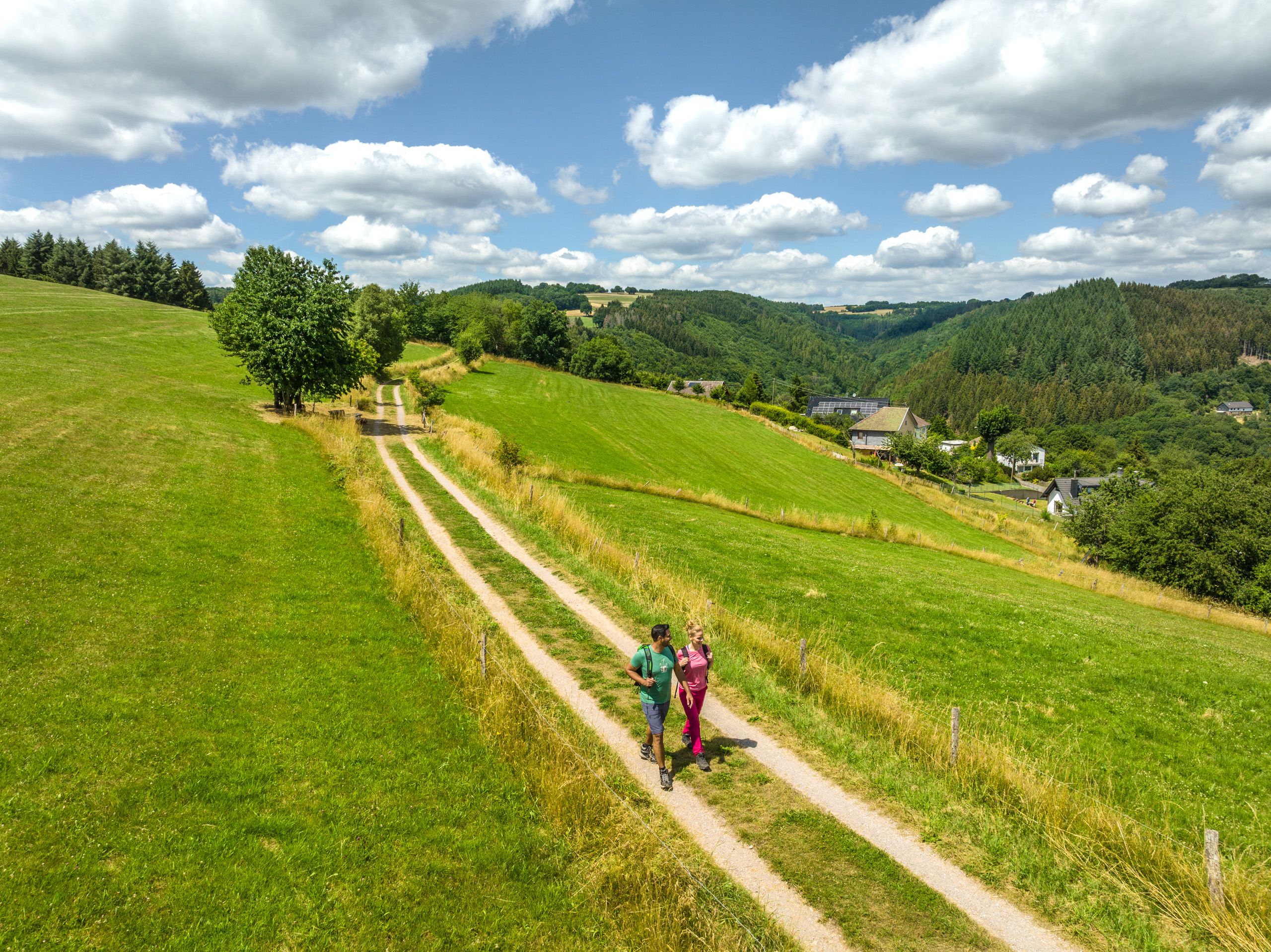 You continue on through the romantic alleyways of Monschau, timber frames wherever you look, finely carved doors and little bridges over the Rur. Pack a few cookies in your rucksack for along the way and then off you go! The Rur, which rushes through the old clothmakers’ town into the valley, is your constant companion today. First, you hike up to the heights – from the “Kierberg” Eifel view you look back at Monschau one last time before delving into the forest. The trail continues to rise and fall until you are greeted by the glittering waters of the Perlenbachtalsperre dam. The walk along the banks is thoroughly relaxing and the climb to Monschau-Höfen is quite easy to complete. At Nationalparktor Höfen, you can find out about the wild daffodils of Eifel and take a little break at the café. You will notice something in Höfen. Beech hedges as tall as houses, some with windows and doorways cut into them. Are the people here trying to hide? No, but they are seeking protection - from the strong winds that blow up here. The hedges not only protect the houses; along the way you will notice that the high hedges appear again and again in the fields, giving you a sense of security.