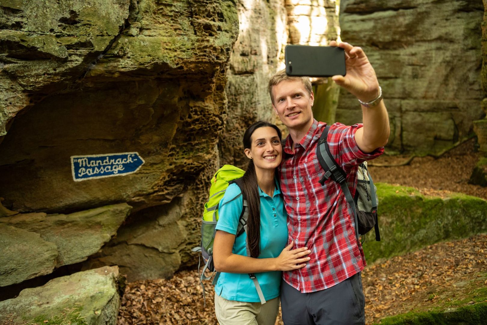 The trail winds through rock labyrinths and around rock bastions, leading to magnificent vantage points and over narrow footbridges, surprising you around every bend. Here you will find your adventurous kick, roam the spectacular Wolfsschluff and the mysterious "Sieweschloeff", explore the "Raiberhiel", climb the iron ladder to the eagle's eyrie at dizzy heights and test yourself in the climbing garden "Wanterbaach"!