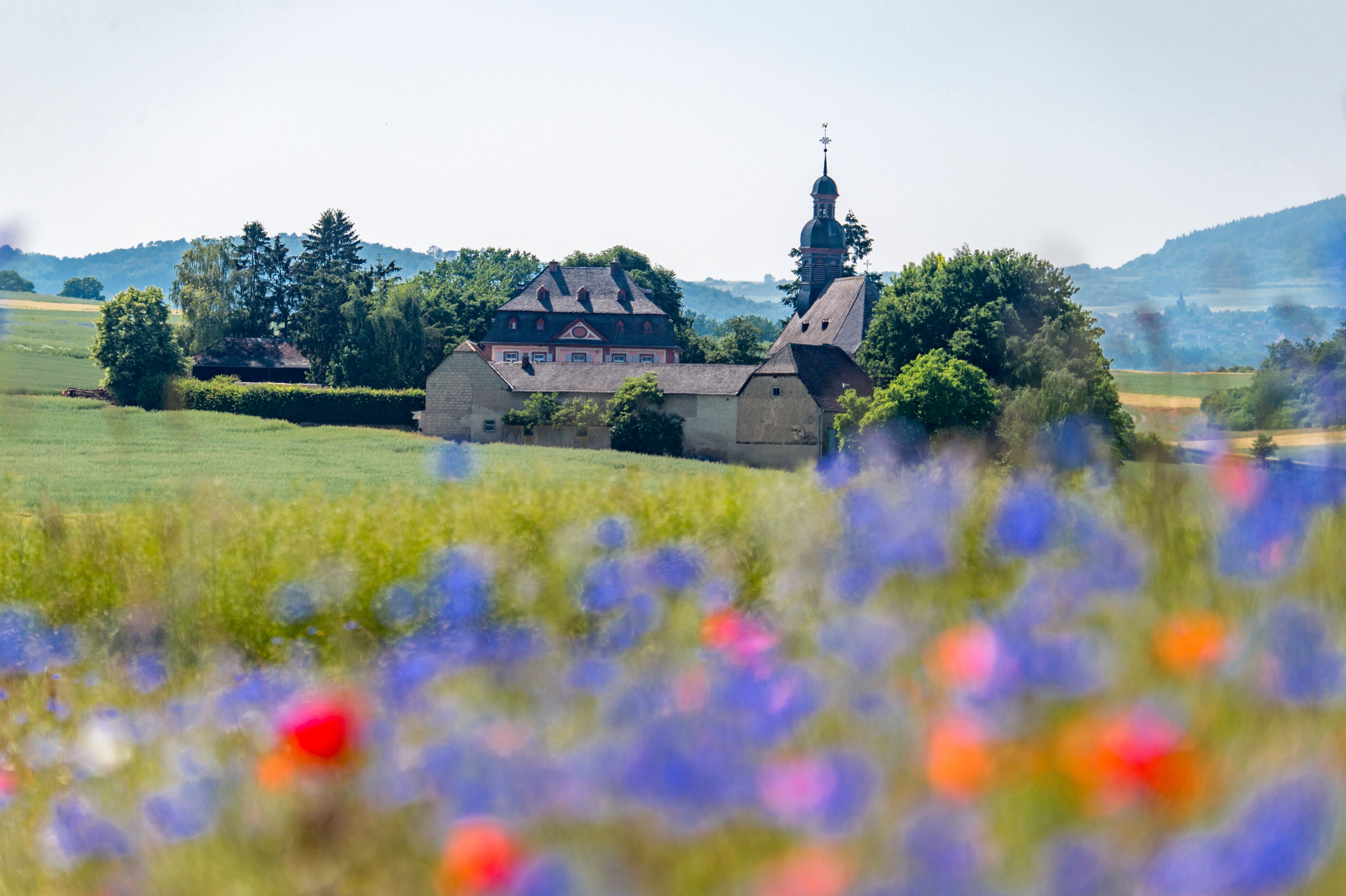 Walk down Bahnhofstraße, turn right at the traffic circle into "Alte Chaussee" and then left into Kirchstraße to the church. Walk down Kirchstraße and turn right at the "Rathaus Café" into Hochstraße. Past the Römerbrunnen fountain and cellar, the path leads onto Große Gasse, where you will see the Alte Propstei. It was built at the beginning of the 18th century and bears witness to the close ties between the village of Kruft and the Maria Laach monastery. At the Große Gasse, keep right and then walk a short distance to the left along the "Alte Chaussee" before turning left into Wellinger Weg. Follow this out of the village past a small chapel. At the next fork in the road, keep right and follow the path through the fields. The path leads past a small airfield and rejoins a tarmac path shortly after a refuge. From there, continue straight on to the right along the country road (L120) to the Fraukirch pilgrimage church. Back from the detour, decide to take the right-hand path at the fork with the refuge. Follow the path straight ahead via the crossroads at the Bannerhof farm to a fork with a hut where several paths meet. Take the left-hand path past the Margarethenhof back towards the village. You pass the fork in the path where you turned off on the way there and the small chapel again. Now take the same route: Wellinger Weg, right onto "Alte Chaussee", right onto Grosse Gasse and directly left into Hochstraße back to the church.