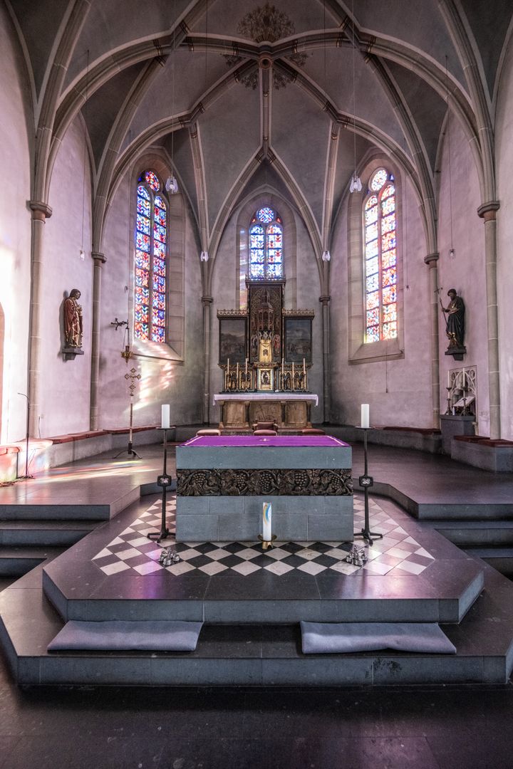 Let's go! Your adventure starts in front of the town hall, right next to the venerable church of St. John the Baptist. If you look around, you may already spot the first hints of times gone by.
