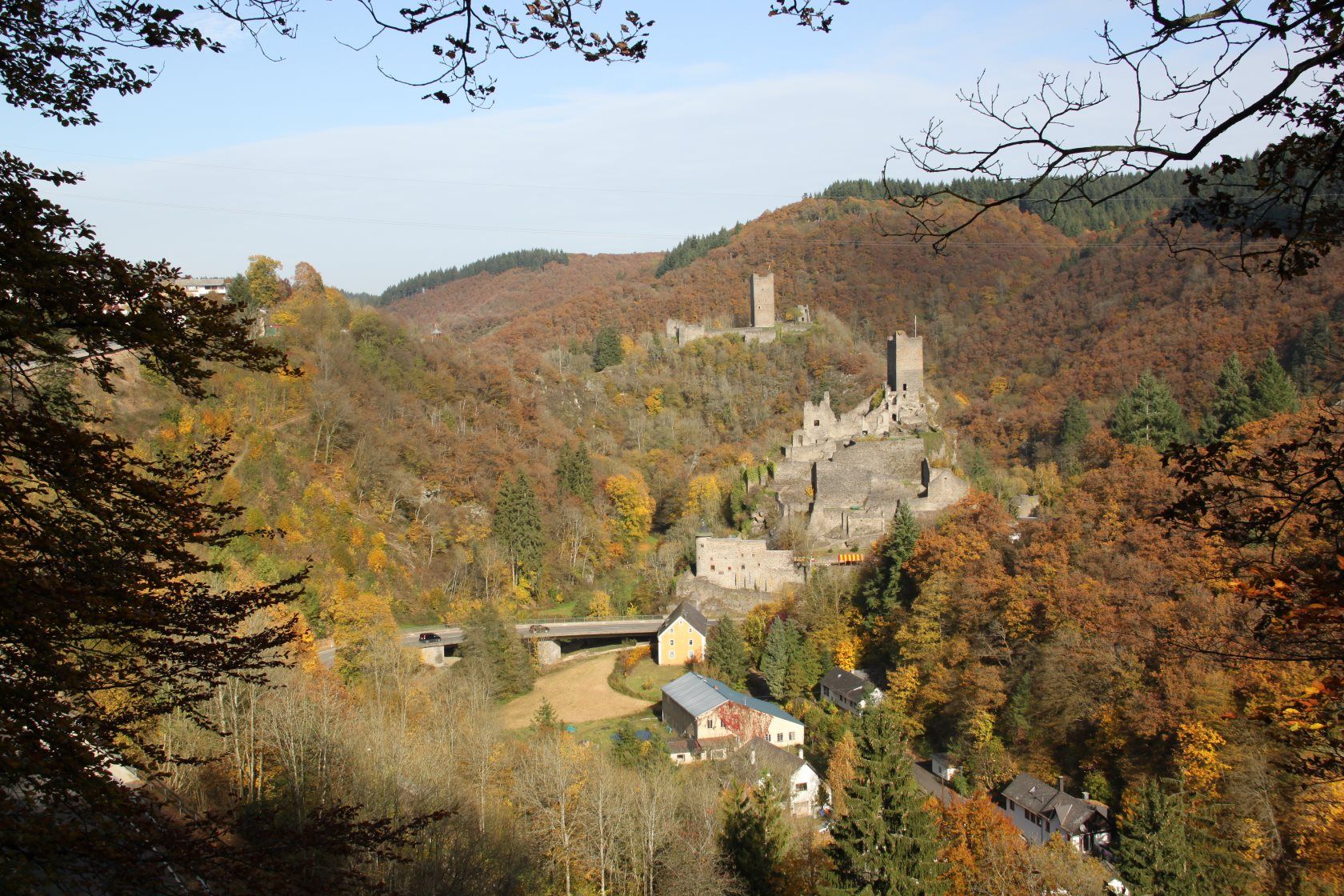 Sometimes, the journey takes a bit longer, such as on the County (“Grafschaft”) Route. Even though it is just 16.5 kilometres long, you will often be tempted to stop and enjoy the view. The first viewpoint is quickly reached after passing the castle pond and through the Lieser valley. From the Waldmannslust hut, there is a wonderful view out over the Lieser valley and onto the Manderscheid castles. In Laufeld, it’s worth paying a visit to the doll and toy museum, as well as walking the nature education trail. With the sound of the burbling Fahlbach stream in your ears, the route continues through the valley of the same name until the stream flows into the river Lieser. And from here on you’re in for an exciting treat! On a narrow path along the rocks, secured in places by wooden beams, the route returns to the starting point of the circular tour. The path is dotted with benches and platforms that invite you to stop and enjoy the view. And of course, you shouldn’t miss out on your own individual “conquest” of the Manderscheid castles. If you still have time to spare, you can immerse yourself in the history of this volcanic region in the Maarmuseum. What a day!