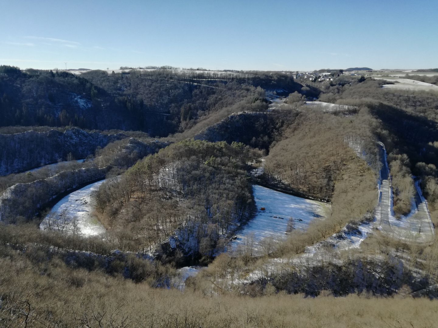 The ridge of the Achterhöhe stretches between Lutzerath, the May village of Immerath, Kennfus and Strotzbüsch. Hiking here is pure slowing down and taking a deep breath, not difficult to manage at around one and a half hours and only moderate inclines, yet unforgettably beautiful. Thanks to a viewing platform and a new, cozy barbecue hut with a forest playground, the Achterhöhe is also a perfect place for families with children to spend a morning or afternoon immersed in a free fairytale world like Nils Holgersson. Because it's not just the views that are enchanting. With a little luck, serenity and a closer look, there are many rare animals and plants to discover along the way, depending on the season. A fantasy journey is hidden on a short hiking detour in the outwardly inconspicuous church in the village of Driesch: an altar carved all over with figures in blue and gold. It is a testimony to deep faith, but at the same time a fascinating pictorial narrative of life and death.