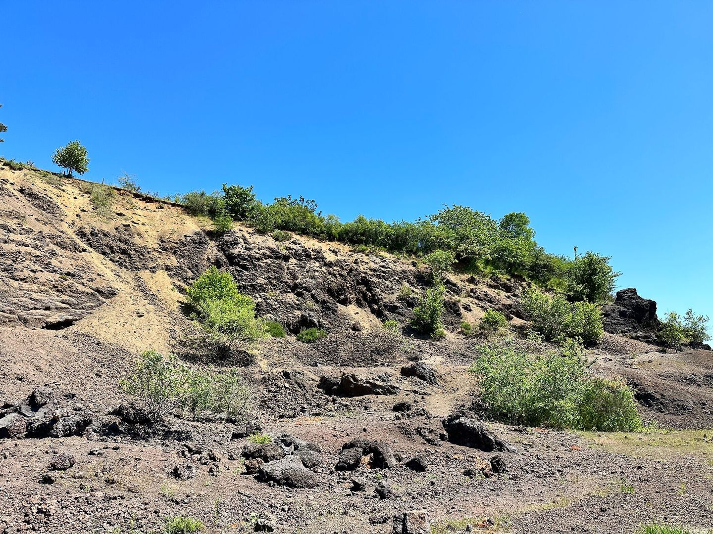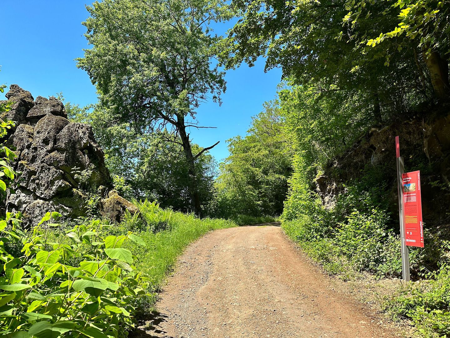 The descent takes you to the Mosenberg Volcano Adventure Park, a former quarry site that now tells the stories of the earth's fire. Along impressive panels, you will learn how the forces of nature once sent lava flows across the land. The cliff face left behind after mining allows you to virtually look into the volcano.