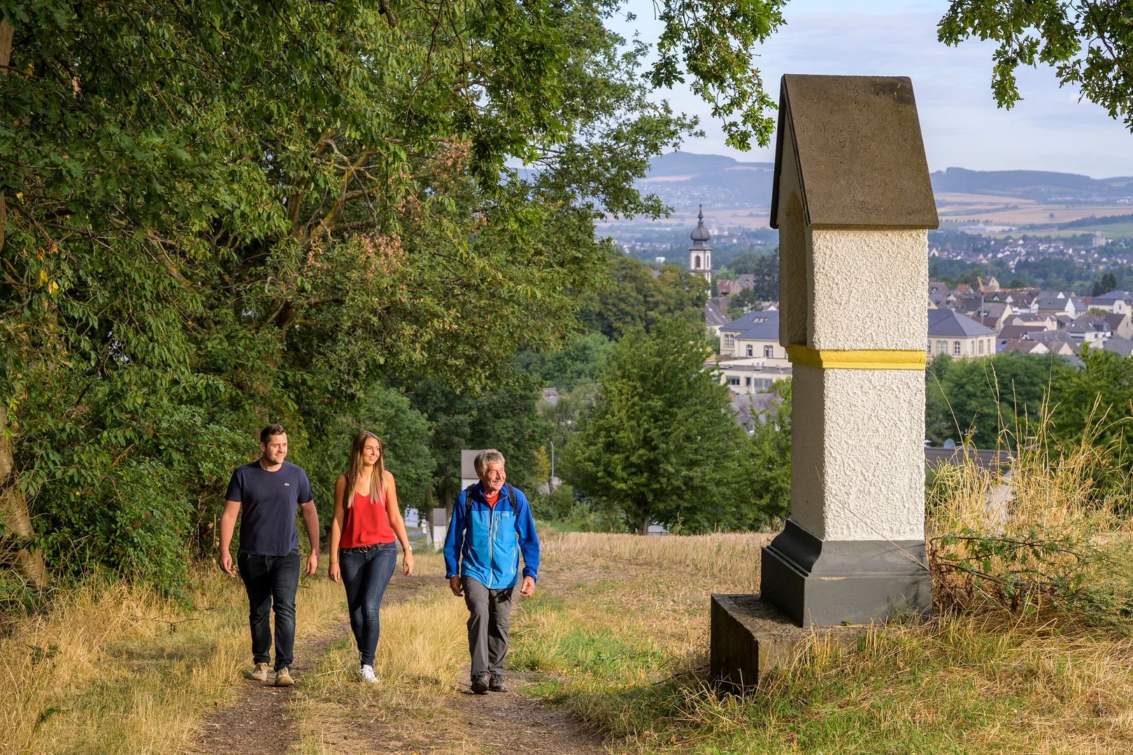 Kreuzberg with portico: The pillared hall on the "Kreuzberg" was built by the Counts von der Leyen in the 18th century. The path to the portico is lined with numerous wayside shrines.