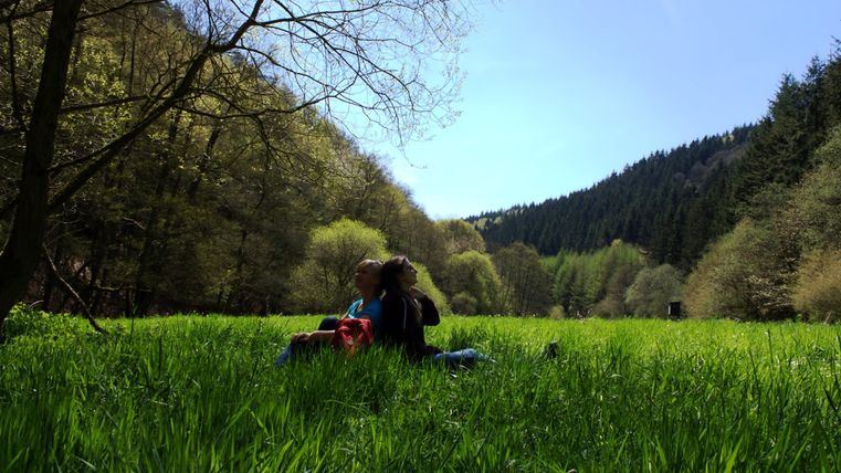 The path leads along the little stream Nitz to the valley of the Achter Bach and to the "Black Madonna", a beautiful statue of a saint in a rock niche, at the foot of which you can rest and linger.