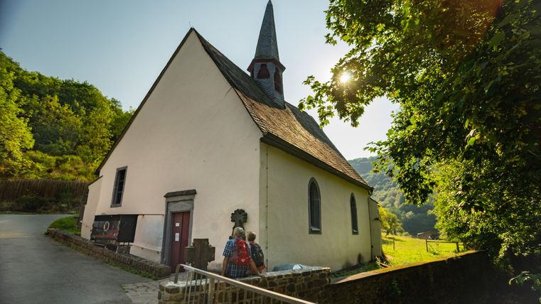Hiking in the footsteps of St. Jodokus: The Jodokus Trail starts and ends in Langenfeld at the neo-Gothic parish church "St. Quirinus", which is also popularly known as the "Eifel Cathedral" due to its importance as a pilgrimage church and its considerable size. On the route, which is around 11 kilometers long and marked with a "J", hikers reach the pilgrimage chapel of St. Jost along an old pilgrimage path.