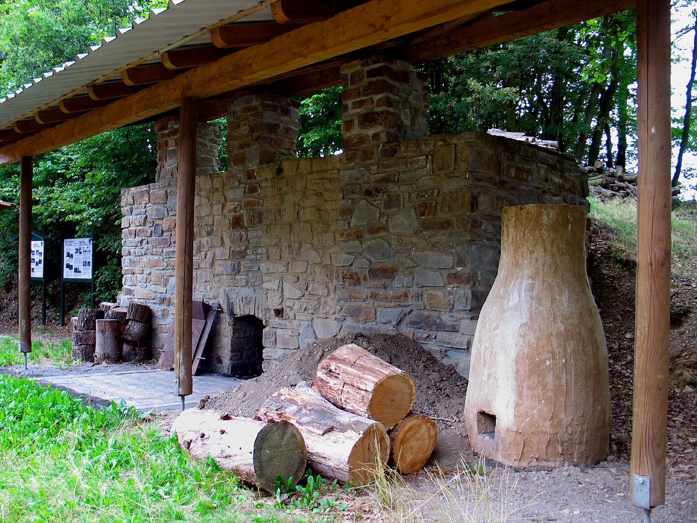 The route continues down the valley to Schalkenbach, past the pretty chapel to information board no. 6 (main road), which describes "The use of the forest in earlier times". Highlights of this route are the charcoal pile and the racing kiln at the fire station above Mittel- Vinxt. It is possible to put the coal pile into operation on request. The trail leads back to the starting point at the Maisbüsch chapel via Mittel- and Ober-Vinxt. This interesting themed hike can also be done as a circular tour from the fire station.