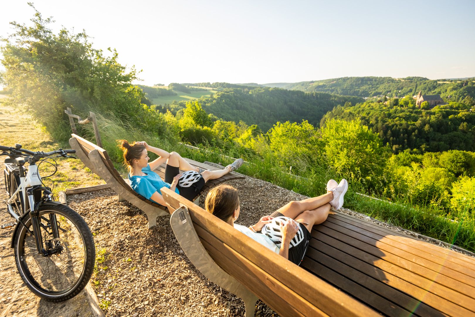 The Kyll Valley Cycle Route extends the whole length of the Eifel region from Dahlem to Trier, the oldest town in Germany. Because it runs parallel to the Cologne-Trier railway line, there is an easy way for you to return to where you started. The long-distance route passes numerous castles as it follows the twists and turns of the River Kyll through the various parts of the region. Beginning in the northern Eifel, you cycle past reservoirs, lakes and those that fit both descriptions, such as the Lake Kronenburg. It's then on through the ancient volcanic landscapes of the Vulkaneifel, followed by the meadow orchards and rugged rock formations in the southern Eifel and the countryside outside Bitburg. A real insiders' tip is the Limestone Eifel Cycle Route, which runs 20 kilometres from Hillesheim to Ahrdorf and links the Kyll Valley Cycle Route with the Ahr Valley Cycle Route.