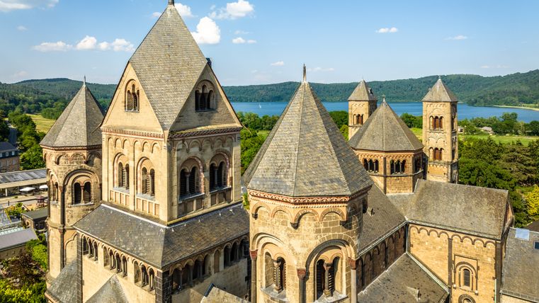 Beautifully situated, the impressive Maria Laach Abbey and a stone nature trail invite you to linger. Nearby, the Seehotel Maria Laach also offers the opportunity to take a break. The route then continues along the lakeside circular trail.