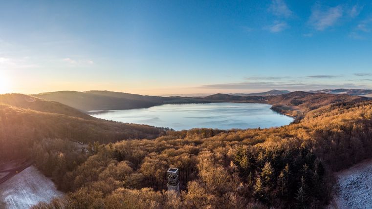 A forest path leads you to the "Lydia Tower" for the crowning finale. From this viewing tower, you can enjoy an impressive view of Lake Laach and the Eifel landscape, even as far as the Siebengebirge on a clear day.