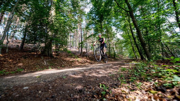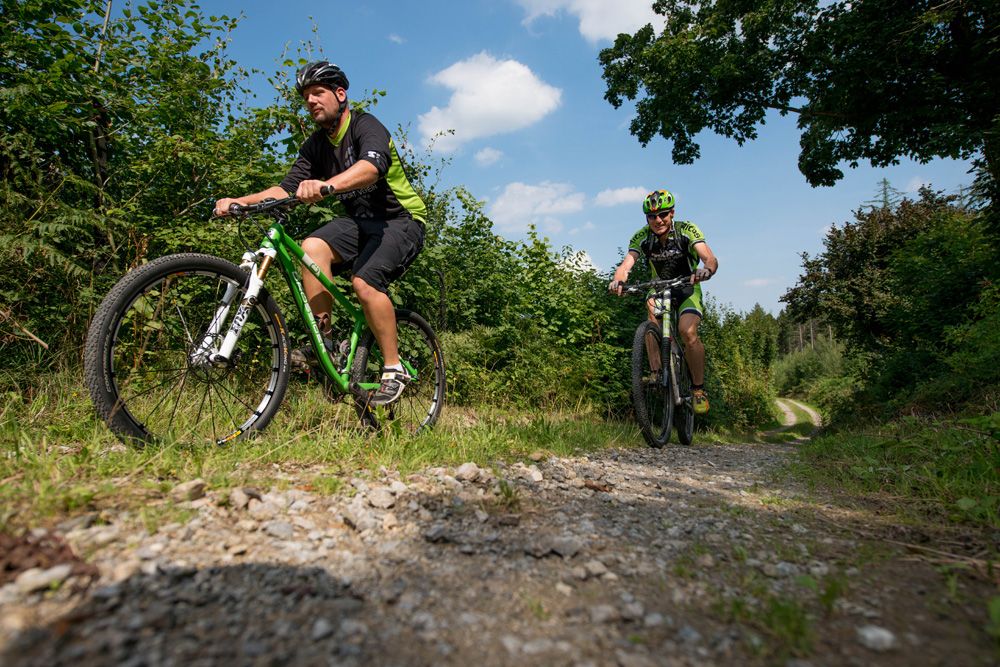 The town of Langerwehe is located on the northern edge of the Eifel, where the low mountain range merges into the Börde landscape. Here you will find beautiful views from the edge of the forest into the Börde, which is characterized by agriculture and open-cast mining. The MTB tour takes its name from Merode Castle, whose origins date back to the 12th century. Today it presents itself in Renaissance style and is considered one of the most beautiful moated castles in the Rhineland. It opens its doors on event days such as the Christmas market, British Flair, Picnic in the Park and several other events. Laufenburg Castle, which was probably also built in the 12th century as a protective castle for Wenau Monastery and is now a place to stop for a bite to eat, is also worth a detour. The town of Langerwehe is known for its pottery museum, which is housed in the old vicarage on the Rymelsberg with a considerable collection, and in the vicinity of which is the old church, the interior of which you should take a look inside.