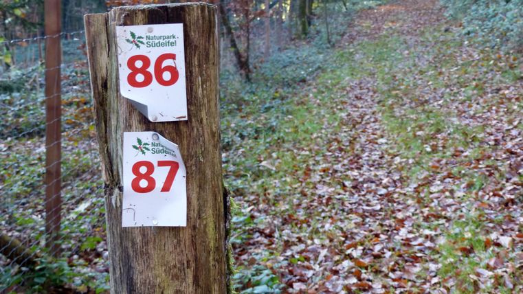 The 87er can be combined with the 86er hiking trail or walked as an "eight", as both run in parallel along the Mühlbach stream. This trail essentially circles the hilltop formed by Mühlbachtal and Mandelbachtal to the west of Waxweiler. An extended break in the small and very well-kept village of Manderscheid is recommended.
