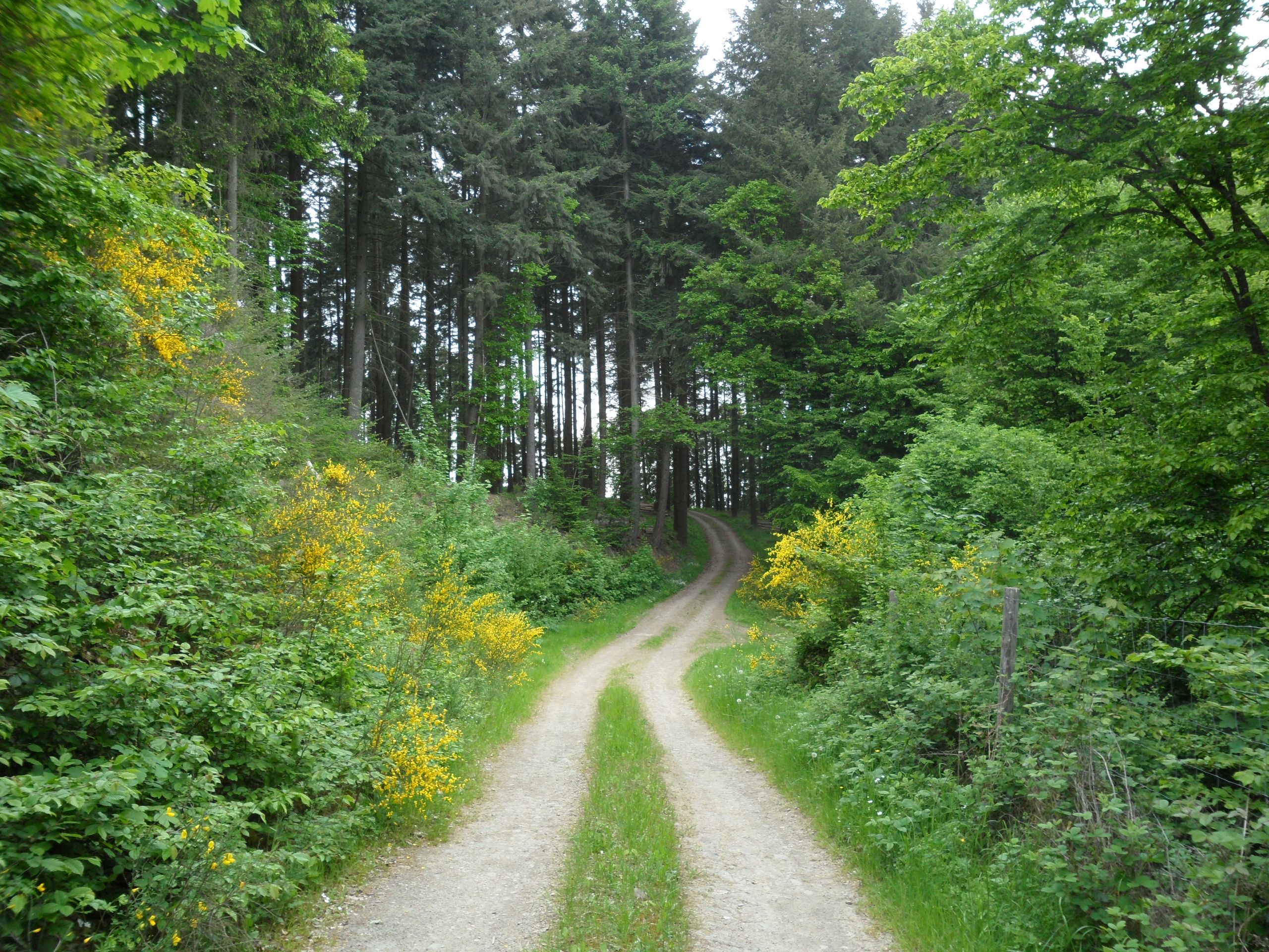 ! Attention! Here we have to cross the Münstereifeler Straße. On the other side, we first keep left, then right over the small bridge and follow country road 73 towards Antweiler. After about 250 meters we turn right into the path "Auf Weiher", which we follow past a few houses. After about 300 meters, after a bend to the right, we walk uphill for about 3 km on a steadily ascending forest path. The path leads us first through mixed forest and later through a beautiful fir forest uphill towards Wershofen.