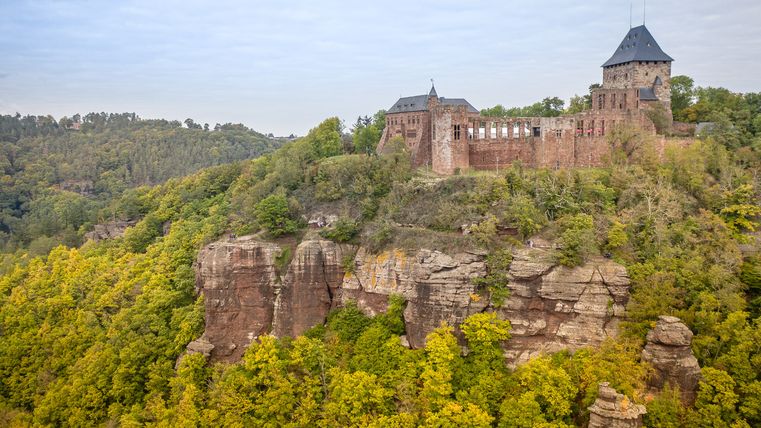 From Hausen, we first take the RurUfer cycle path in a northerly direction via Blens to Abenden. At the Rur bridge in Abenden, we leave the RurUfer cycle path and follow the MTB signposting H (Felsen-Rundfahrt) over the Rur bridge and past the leisure center and the outdoor pool. We stay on this signposted trail of the MTB trail network "Freifahrt Eifel" until shortly before Zerkall. At the point where the Rurtalbahn crosses the Zerkaller Straße, we do not turn right onto the H-route, but turn left onto the Zerkaller (later) Bergsteiner Straße (L 11) and follow the MTB signs E (Krawutschketour) at the signpost at the Zerkall National Park information point. Passing the Renker paper factory, on whose Zerkall paper the German constitution was printed, we enter the idyllic Kalltal valley. We climb steadily up the Eifel heights to Brandenberg. At the entrance to the village, we deviate from the signposted MTB trail and instead of turning left into Brandenberger Straße, we turn right into Brandenberger Straße and follow it to the end, where it meets Nideggener Straße. Here we turn right and follow the L11 road to the entrance to Bergstein and turn left into Auf dem Stückchen. At the junction Auf dem Stückchen / Im Siebert we meet up with the Krawutschketour again. We turn right into Im Siebert and follow the MTB signposts to the cemetery. Here we can make a detour to the Krawutschketurm on the Burgberg. Otherwise, the signposted route E takes us steadily downhill to Zerkall. At the national park information point, we change to the RurUfer cycle path and cycle back towards Heimbach to our starting point in Hausen.