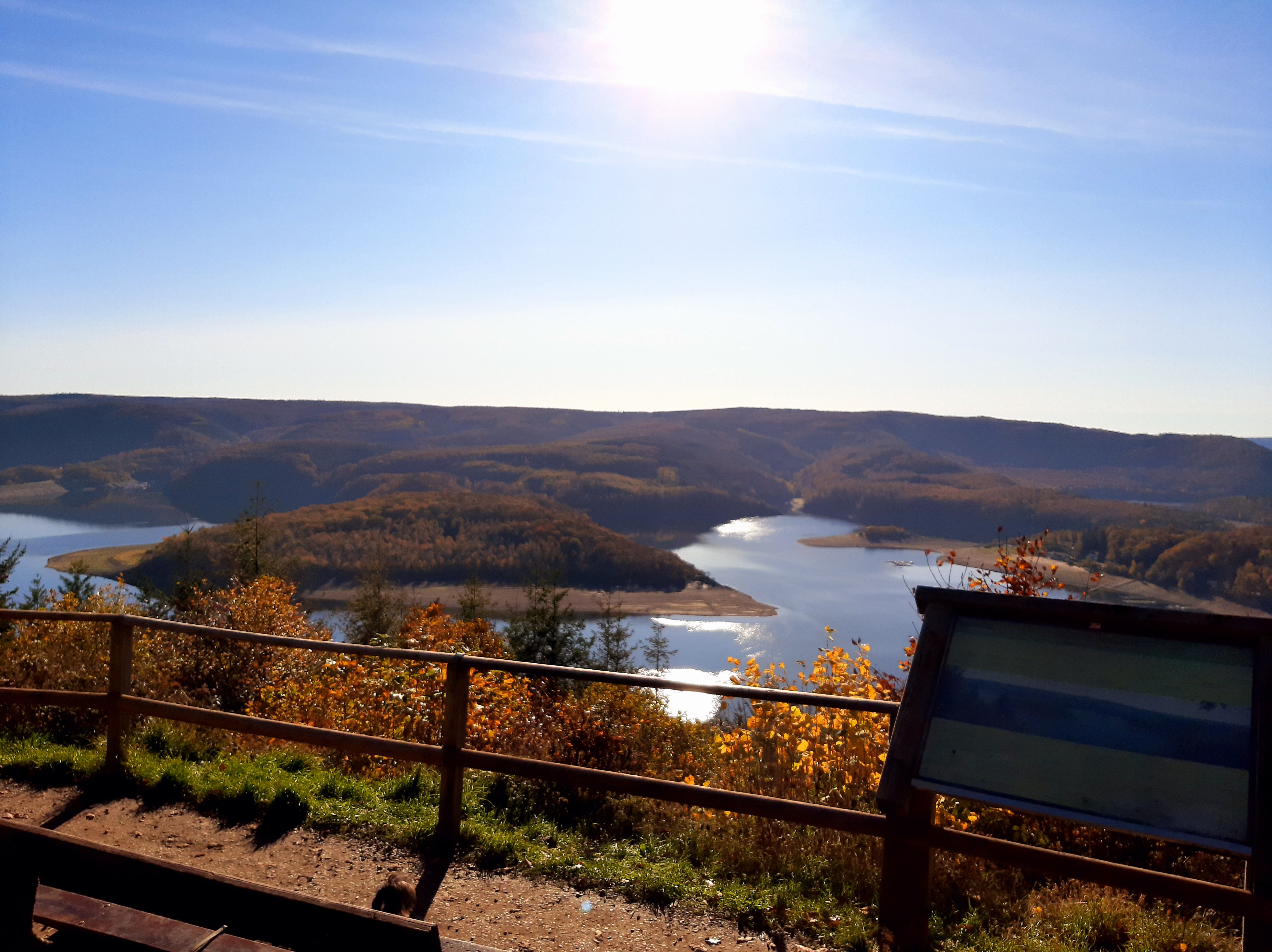 - You then reach the first viewpoint "Schöne Aussicht" with a view of the blue Rursee and its island of love. A little later, the next unique panoramic view awaits you on the Hubertushöhe. Tip: don't forget to take a few group photos at both viewpoints.