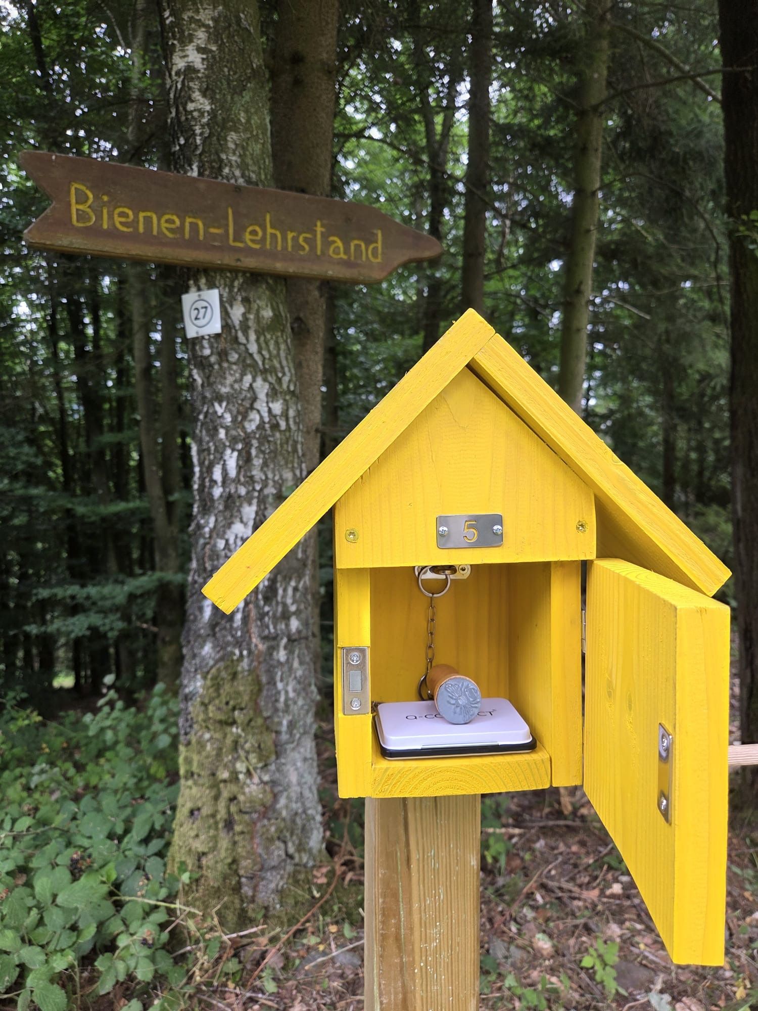 Four stamp houses are marked with an asterisk in the booklet. The children will also find a number there that they have to memorize. At the end of the trail, the combination of these numbers gives the code for a treasure chest. Inside is a small reward for each child. Most of the rewards are lovingly handmade by the Rohrener and Widdauer Landfrauen and the Landmädels, for example small crocheted bees.