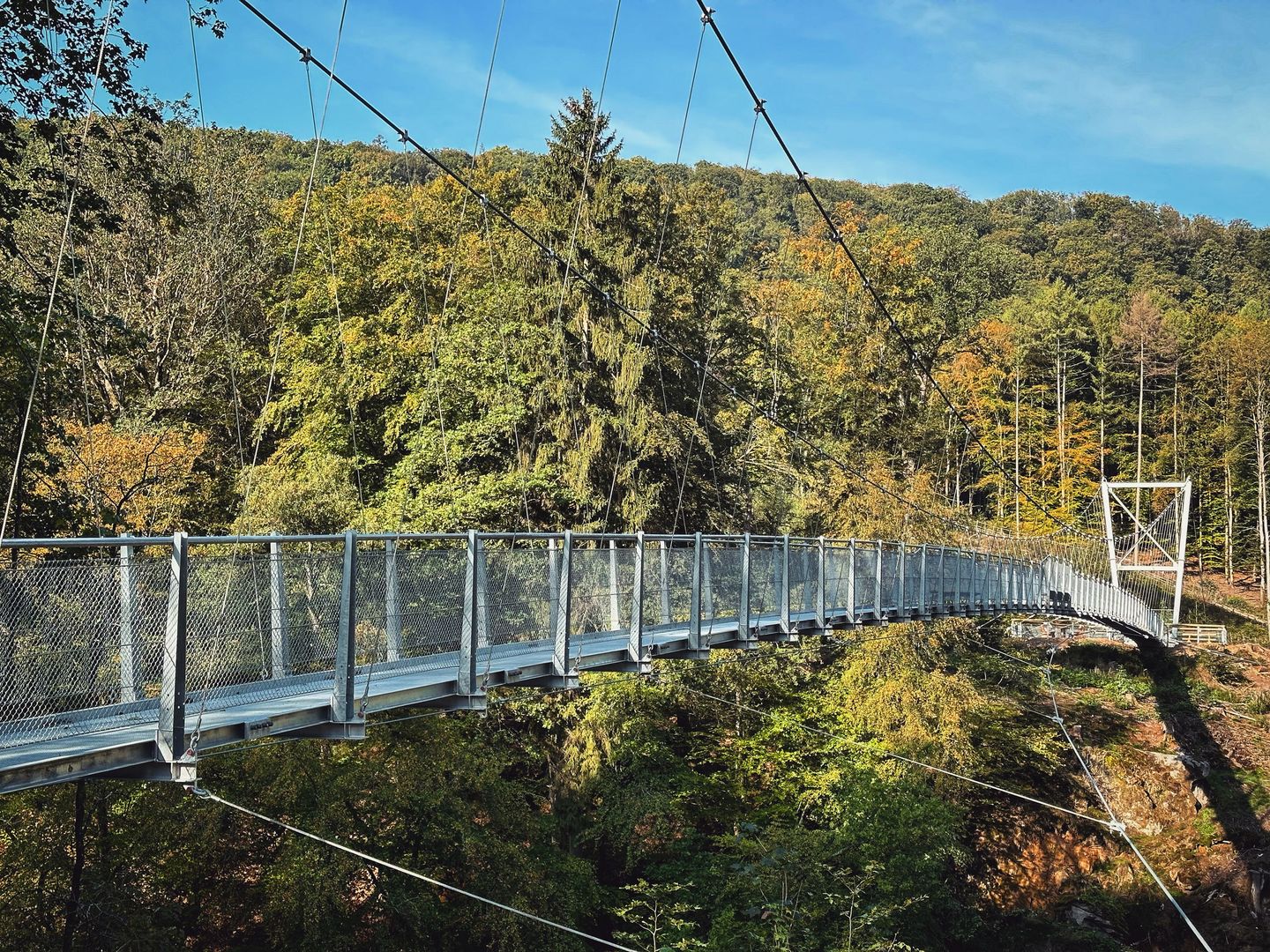 The new suspension bridge over the Prüm at the Irrel waterfalls is well worth a detour. (accessible from 30 September 2023) For the first time since the flood disaster in 2021, you can cross the Prüm again here. And it's even barrier-free!
