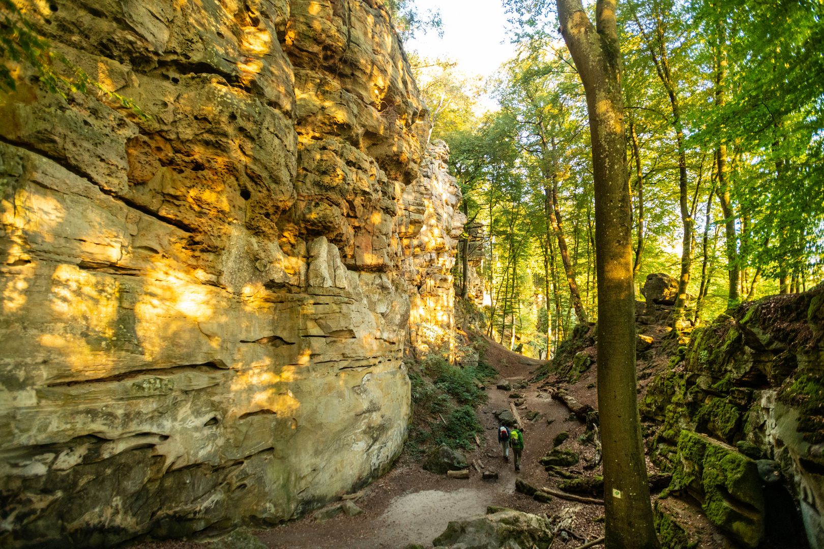 They stand majestically as if they had never done anything else: the huge rocks of the Devil's Gorge. But they tell a dramatic story. Towards the end of the last ice age - around 12,000 years ago - the alternating periods of frost and thaw led to huge rockfalls on the edge of the Ferschweiler Plateau plateau. There must have been a huge crash back then when a large sandstone block tipped out of the plateau wall and opened up the deep, narrow crevice that we can walk through today: The Devil's Gorge.