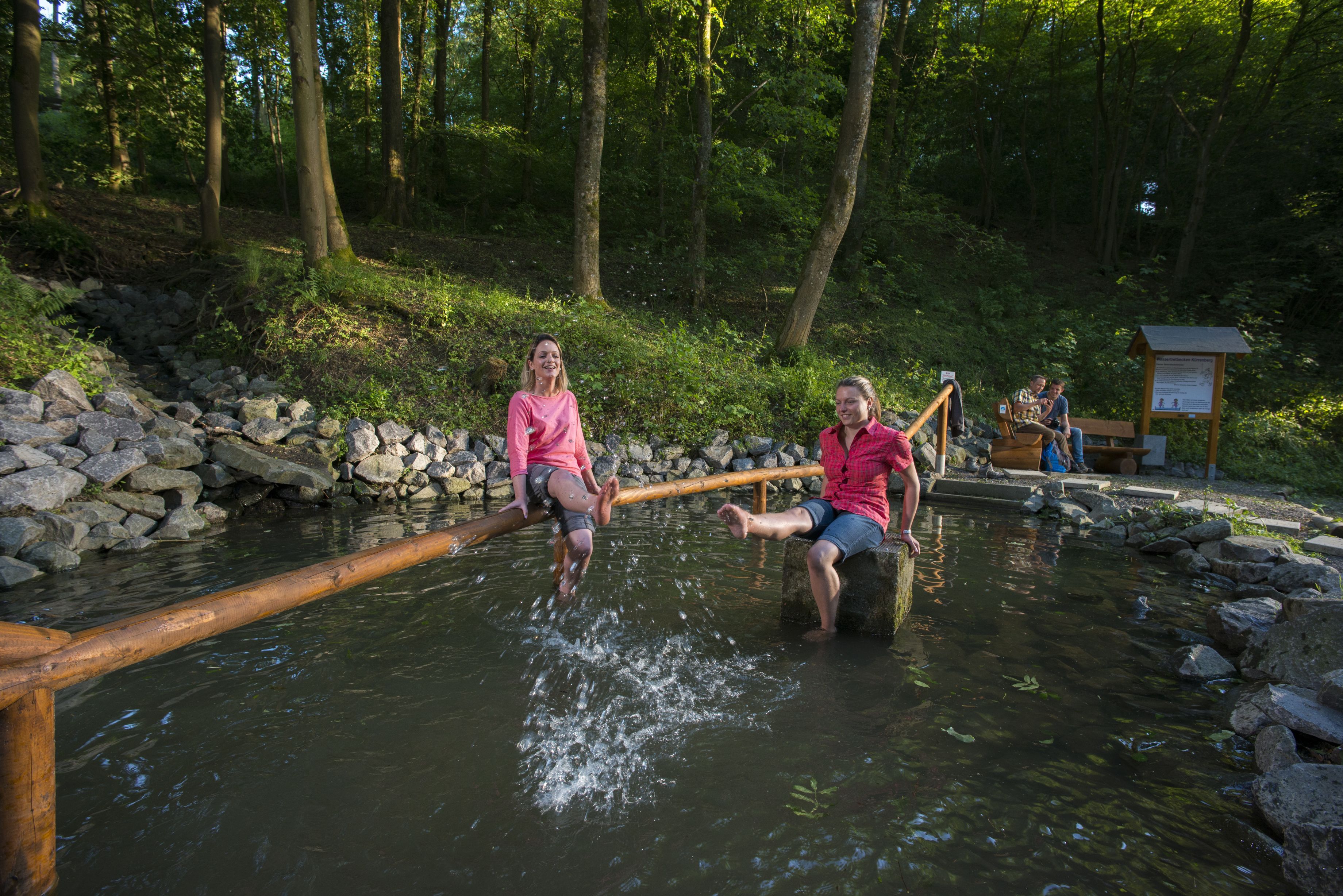 The circular route begins in the middle of the forest, at the Rhododendron car park. We recommend that you follow the route in the clockwise direction. At the Bleiberg hut, you have a great panoramic view, and if you stop to rest on the curved “dream seats”, you will understand why the route is called “Eifel Dream”. Further along the way, there is an opportunity to refresh your feet in a natural Kneipp basin.