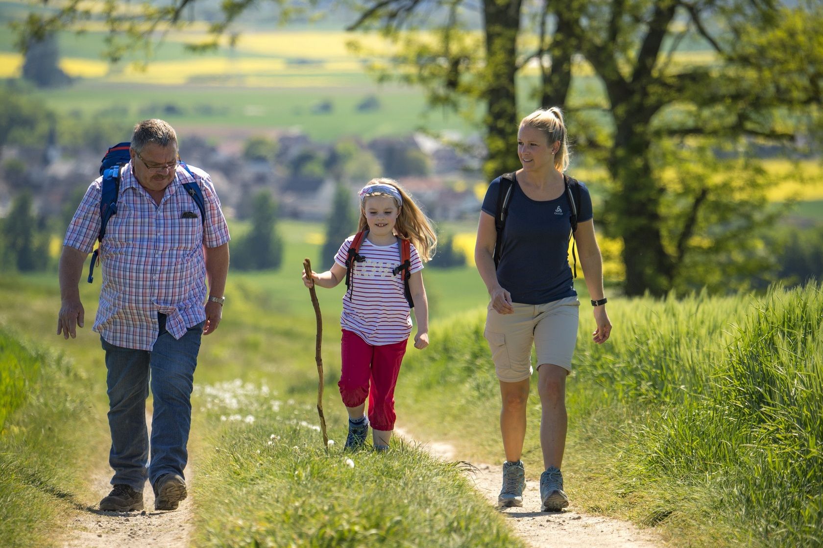The hiking tour takes you along natural paths through a small hiking paradise in the Eifel: you walk through fields and meadows, past gnarled trees and along the idyllic Polcher Bach stream. The fantastic views over the Maifeld are particularly impressive during the bright yellow rape blossom. The collegiate church of Münstermaifeld and the volcanic cones of the Eastern Eifel are striking landmarks on the horizon. Incidentally, the best way to enjoy the views is to hike the trail in a clockwise direction.