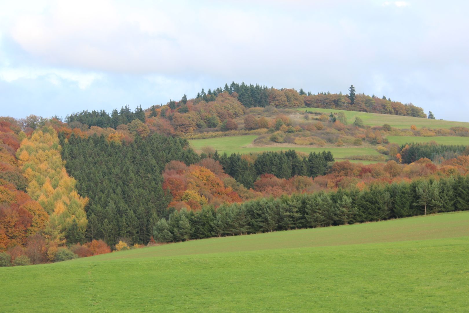 The Wirftbach accompanies the hiker up the stream to the edge of the village of Wirft. Passing the Wirfter Refuge, the path climbs uphill for a short stretch before leaving the Wirftbach valley via a serpentine path in the area of the Dreimüllerhof estate. On this section of the path, which climbs slightly, you can enjoy an impressive view of the Dreimüllerhof, the village of Wirft im Tal and the high-altitude village of Hoffeld. Once you reach the top, a steep path leads through the forest back down into the Wirftbach valley. (approx. 200 m). A little caution is advised here! Nature lovers can expect a floodplain with extensively managed wet meadows. After a short time the hiker reaches the Müllenwirft area of a former pilgrimage site "Zur Not Gottes" which was sold and demolished in 1823. A farm with a mill also belonged to it. On the opposite side of the valley, a small chapel built in 1988 reminds of this formerly important place of pilgrimage. The path continues along the Wirftbach stream to the Barweiler mill with fishing ponds. Along the fishing ponds, the path leads upstream to the road bridge that spans the Wirftbach. Here we leave the Wirftbach on an old pilgrims' path in the direction of the well-known place of pilgrimage Barweiler. At first, we walk through a wooded area and reach the first meadows and the edge of Barweiler. Passing the meteorological observatory and following a station path we walk to the vantage point "Hömmerich". This point has an altitude of 496 m above sea level and offers an unparalleled view of the Daun Volcanic Eifel, the Snow Eifel and the Upper Ahreifel. Meaningful panoramic pictures indicate the places and elevations and can be determined with the help of the boards. A forest path leads from the "Hömmerich" to a meadow path which leads through a hollow to Barweiler. Walking through the village we reach the pilgrimage church St. Gertrud in the centre of the village. The veneration of the Virgin Mary goes back to a miracle in 1726, after which the withered lily flowers on a statue of the Virgin Mary started to bud again in September. Then, after the ecclesiastical authorities had verified the event, this place of grace "Zur lieben Frau mit der Lilie" became a place of pilgrimage for the people of the Eifel to which many pilgrims still go on pilgrimage to this day. In Barweiler there are several gastronomic stops after which the path to the edge of the village leads into an impressive ash tree alley. From here we walk downhill until we see the entire "Kirmutscheid" ensemble in front of us. A bench invites you to take a last rest before the end of the hike.