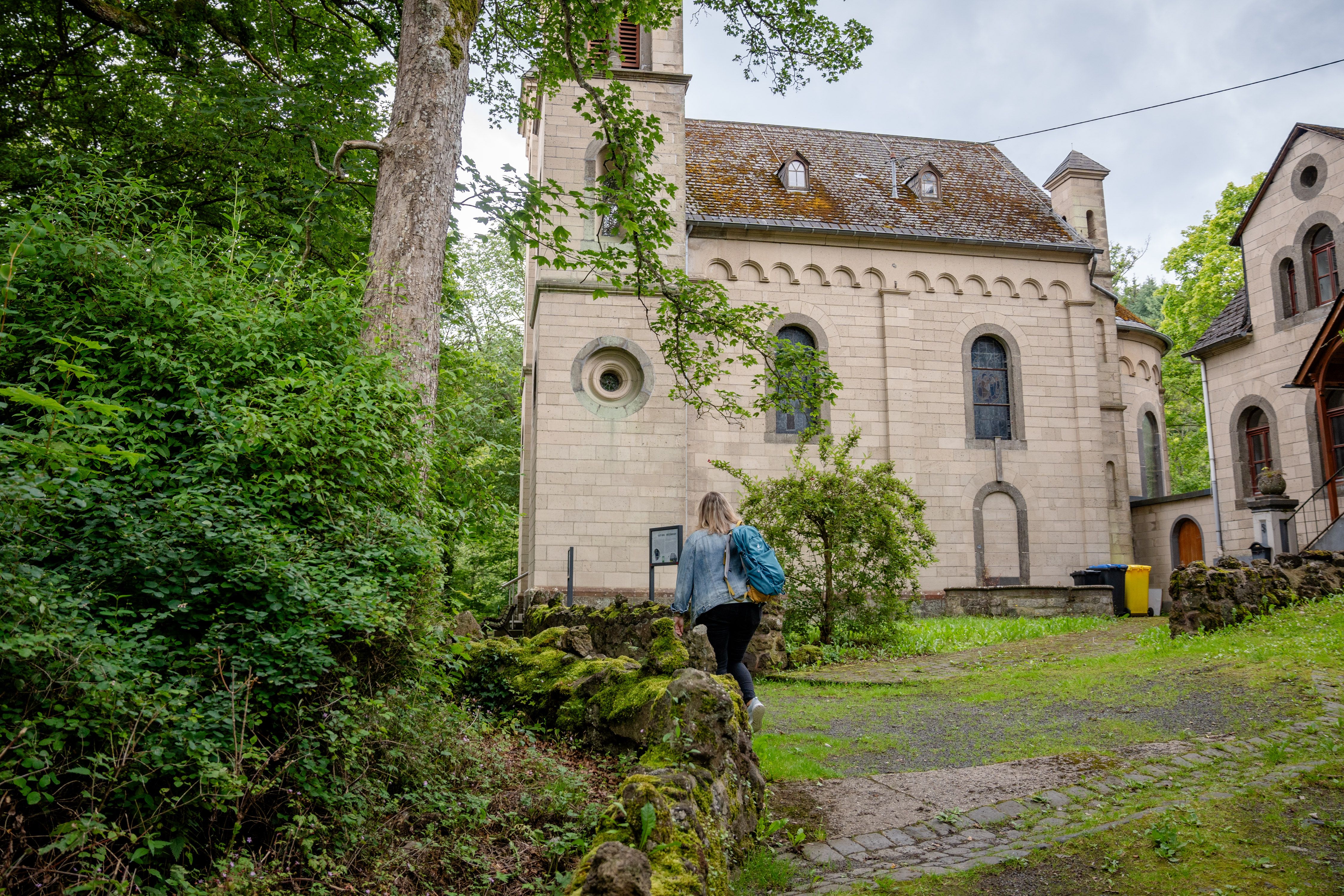 The chapel of the "Sorrowful Mother of God" is located on a small hill not far from the village of Kempenich. It was built in 1879 by the then pastor Ladislaus Stanislaus Ferdinand von Freyhold. The chapel stands on historical ground; there was once a castle complex on the same site, popularly known as the "old castle". The extensive complex consists of a pilgrimage chapel, Stations of the Cross, Lourdes Grotto and the burial place of Jesus with the eleven apostles as well as a garden. It is a place of contemplation and a landmark of the local community of Kempenich, which is visited by many residents and guests. From the Kreuzwäldchen, existing field paths lead to the route of the Brohltal railroad, which ran to Kempenich until 1974. Today, a cycle and hiking trail runs along this route. This path takes you back to the village. It leads past other historical sites and offers interesting views of the Burgberg with the former Kempenich Castle. The Zeckelsweg connects the individual areas and provides exciting insights into the history of the village with information boards. Due to its route and length of 2.9 kilometers, it is particularly suitable for families with children, but also for people with limited mobility. Alternatively, it is also possible to skip the loop through the Kreuzwäldchen altogether or to walk back from station 8 to station 5 and skip stations 9, 10 and 11, as there is a steeper hill to climb here.