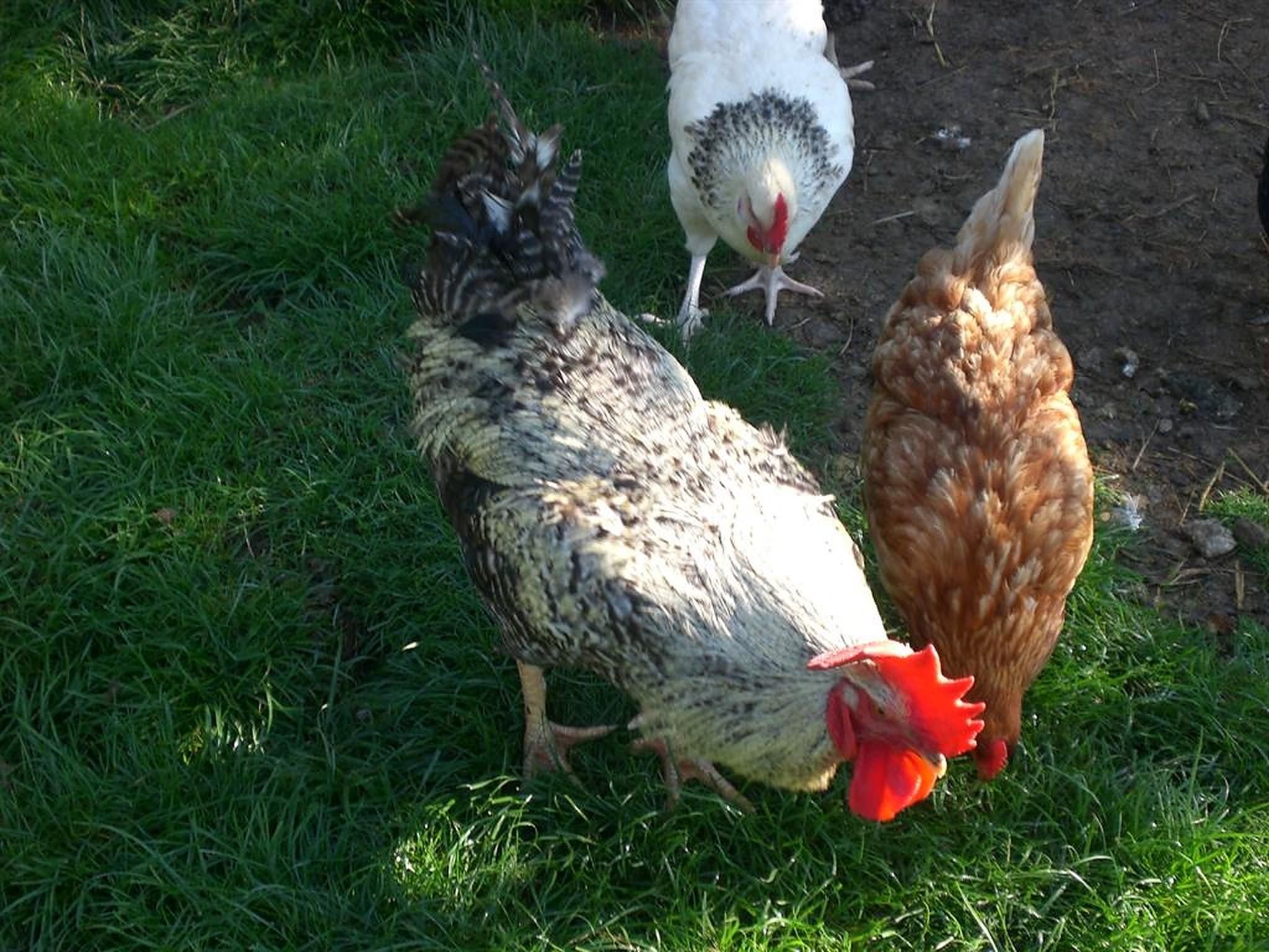 Our farm is home to a few chickens, rabbits and small ponies. We harvest hay on green areas.