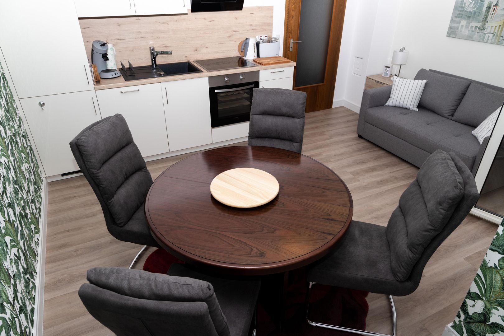 Brand new, great studio and apartment furnished with love. The location is in the absolute city center. More central is no longer possible, right on the pedestrian zone on the first floor (no elevator). The facility is completely new (renovation ended in January 2020). The studio is furnished in a youthful modern style, the apartment has a modern, elegant touch. To your studio or apartment you will receive a free parking in the center of Bitburg. Pets are not allowed!