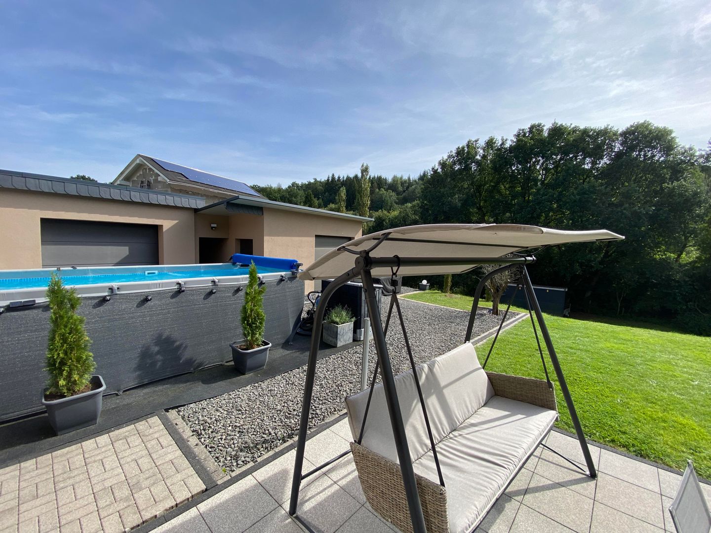 Immerse yourself in a special holiday world in the heart of the Eifel, along the Moselle and near the fascinating Maare. With us, a unique accommodation option awaits you directly on the edge of the Eifelsteig. Our spacious holiday accommodation extends over 156 square metres and offers space for up to six people. Enjoy the incomparable view of the surrounding nature from your terrace.