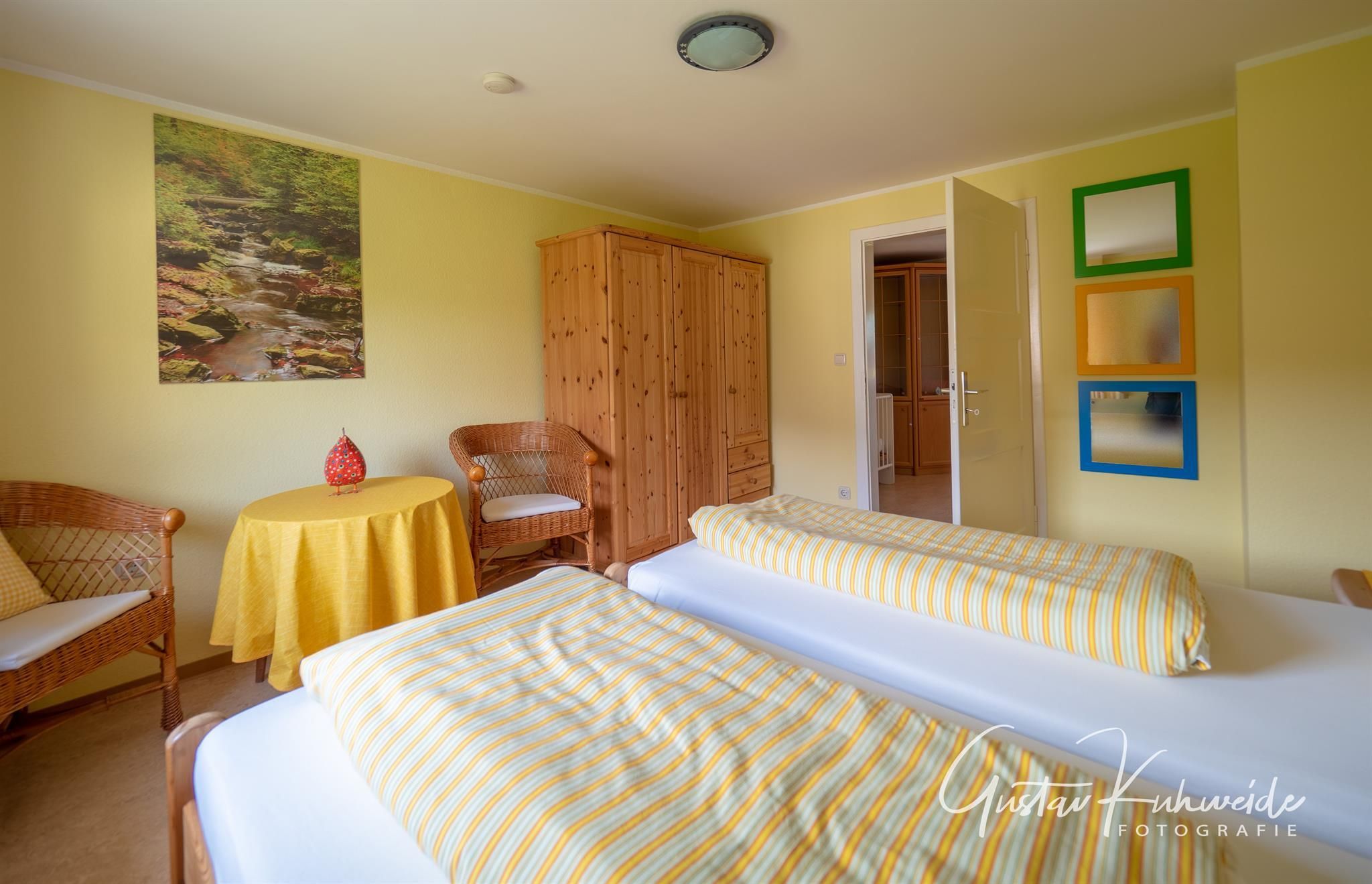 Our house is a former farmhouse with currently 2 apartments, one of which we have converted into a vacation apartment with a total of 5 rooms. Especially the first floor with ground level entrance, double bedroom (bed with raised frame), separate toilet, modern bathroom with tub and shower, cozy kitchen with corner bench, living and reading room with great views are suitable for people with walking disabilities, seniors and families with children. On the 1st floor we have a children's room with a crib and another double bedroom.