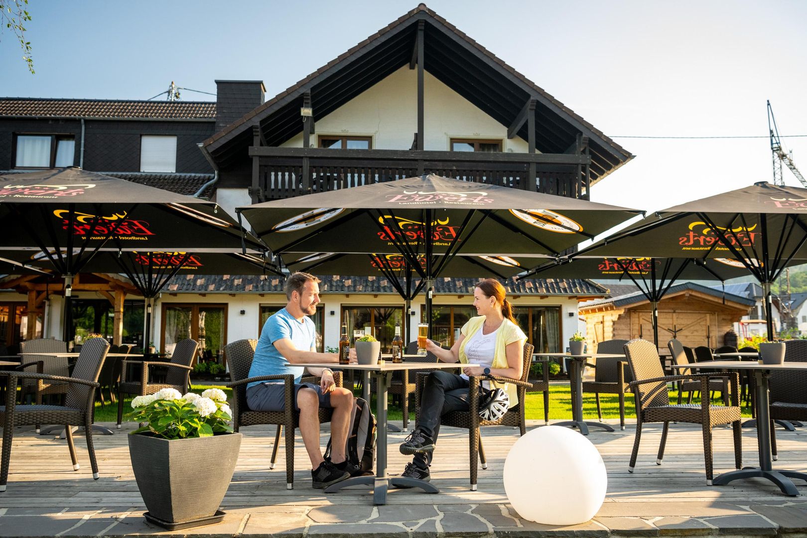 Welcome to the Hotel Restaurant Ewerts. You need a few days of regeneration, silence and relaxation? You want to hike or go on a vacation with the family? Then you will be in good hands in our Hotel. The natural surroundings of the hotel will be just right for you. Our friendly team and the rest of nature will allow you to relax and unwind. Many hiking and cycling trails will let you start actively into the day and the numerous attractions in the nearby area will allow you to enjoy various days. We look forward to your visit Your family Ewerts We spoil your senses in our Restaurant. Our extensive menu reflects the varied reperto ire of dishes. With many variations, we will familiarize you with regional delicacies Meat, fish, poultry and deer supplemented spoiled with fresh and clever side dishes of your senses - in addition to a fine wine from the Ahr - an unforgettable experience. With regular buffets we provide you with variety. Of course, we also offer you a feast in the afternoon. With a fruity ice cream, homemade cakes and coffee you can relax at our terrace directly at the Ahr. Our facilities for 20 to 130 people are waiting for you - so your family party is in good hands with us.