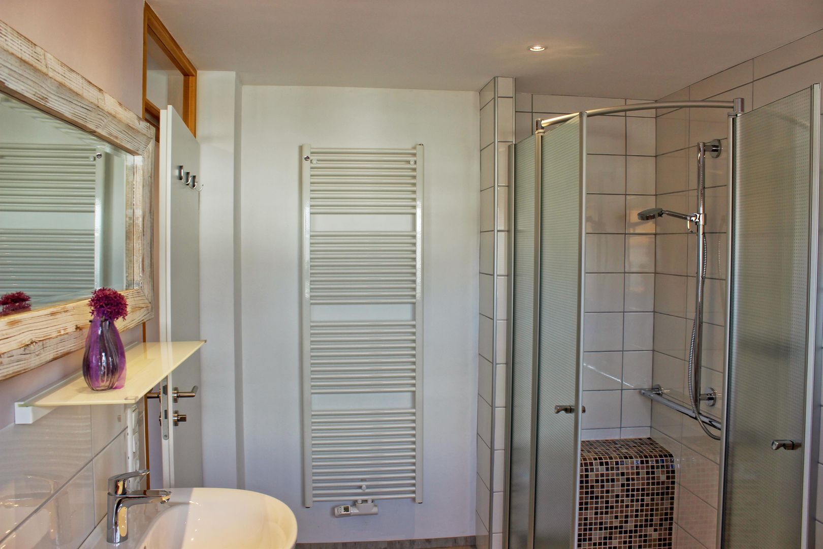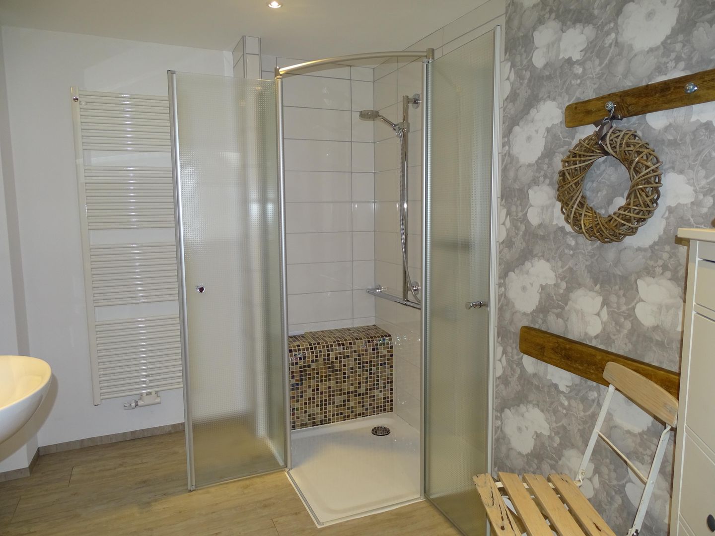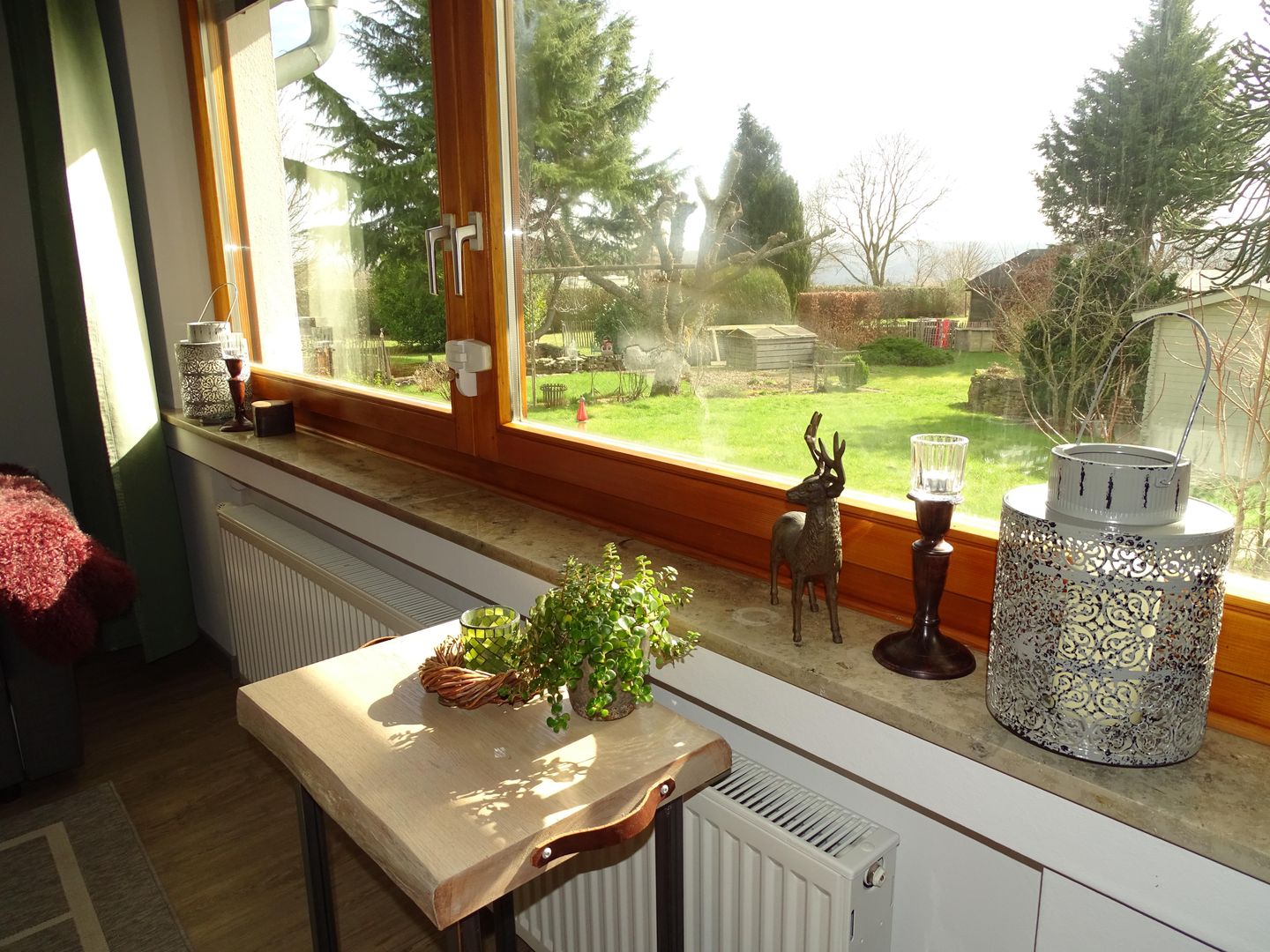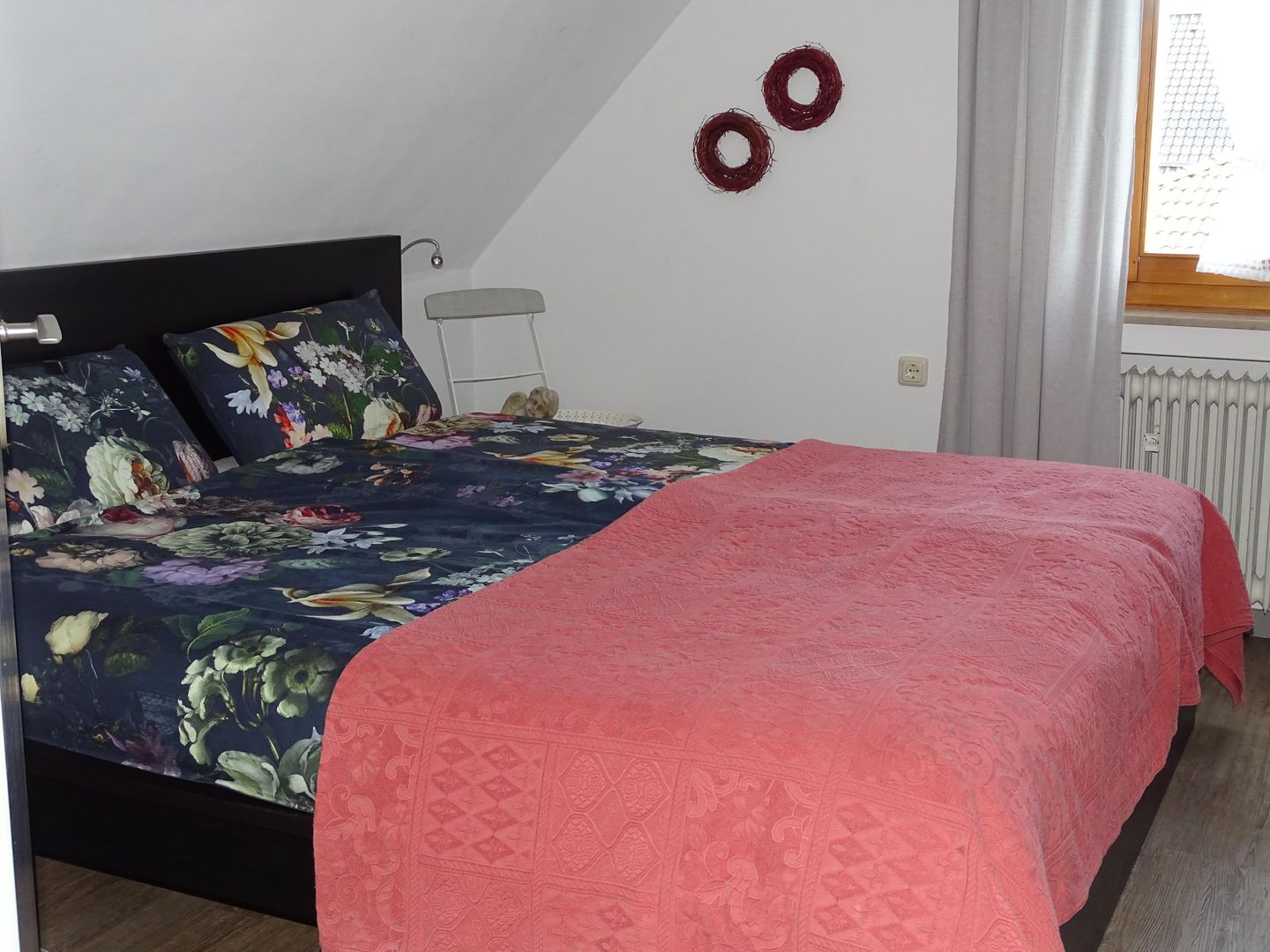 The living and dining room are comfortably and generously furnished and face south with a view of a large garden. There is also a large sofa bed in the living room.