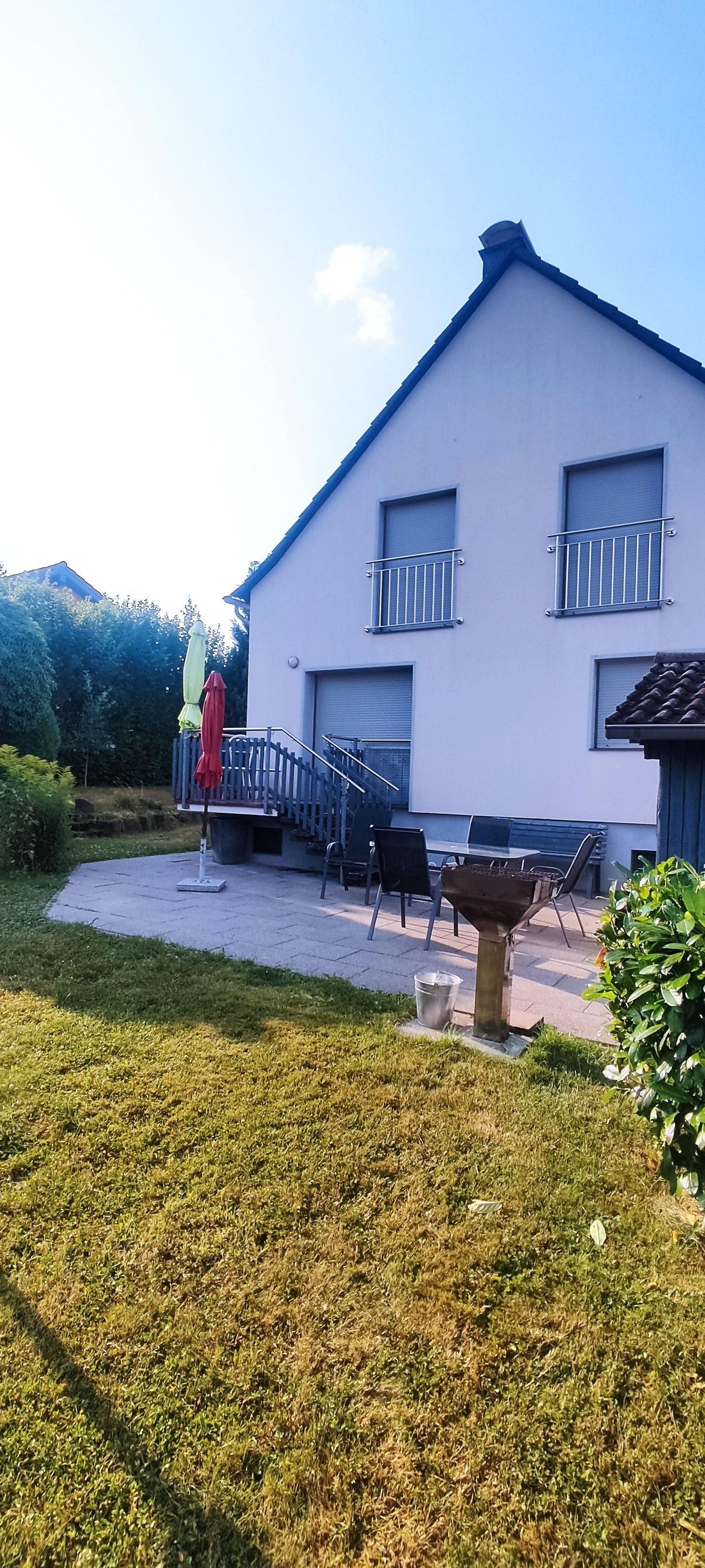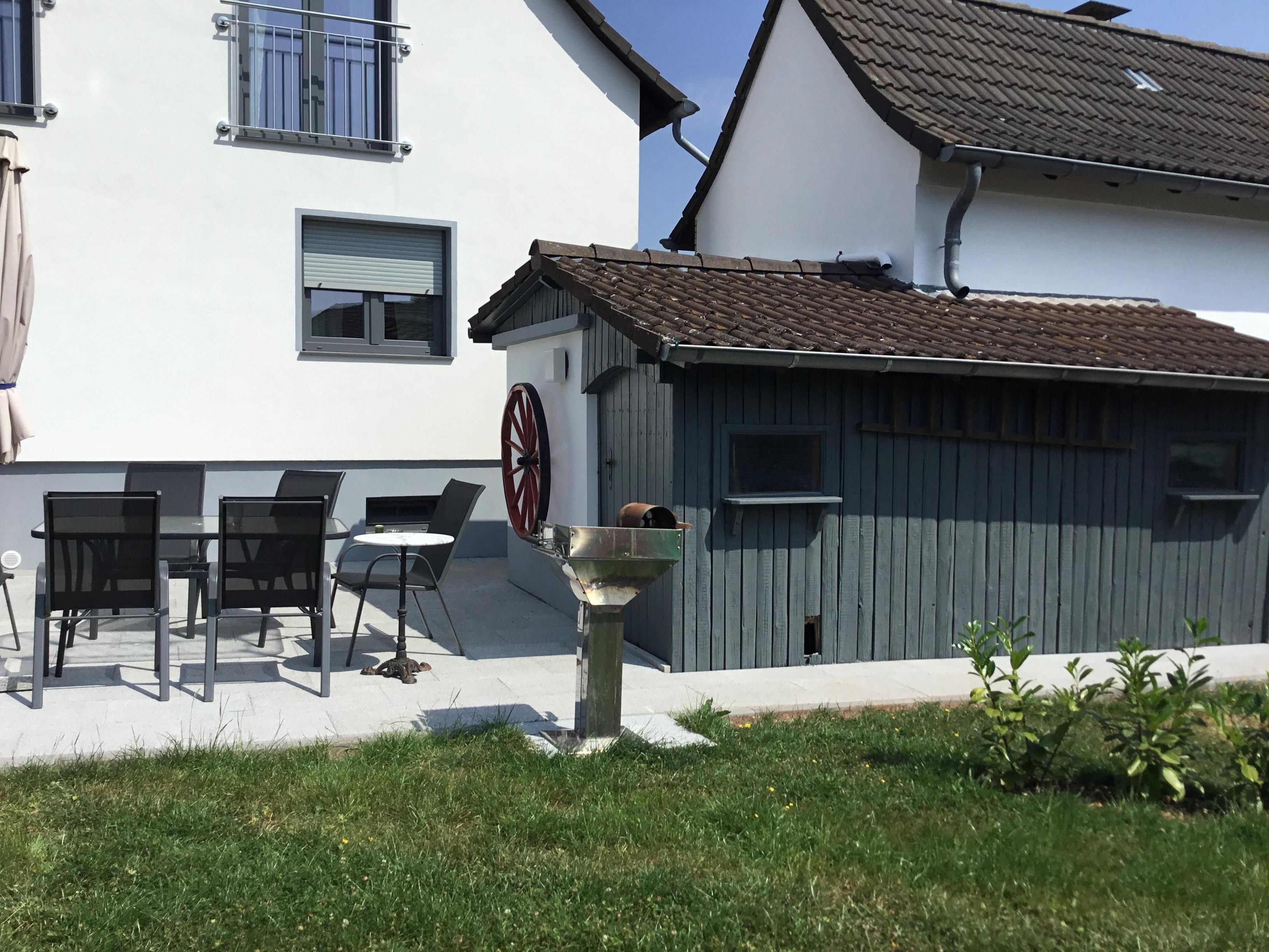 There is one bathroom downstairs and one bathroom upstairs. Bedlinen and towels are included from 4 nights and more. End of lease cleaning is included. In the basement you will find a washing machine, tumble dryer, laundry rackand clotheslines.There is parking for up to 5 cars on site. We offer a lockable garage to cyclists and bikers. You are also welcome to use the garden with barbecue belonging to the house for your relaxation.