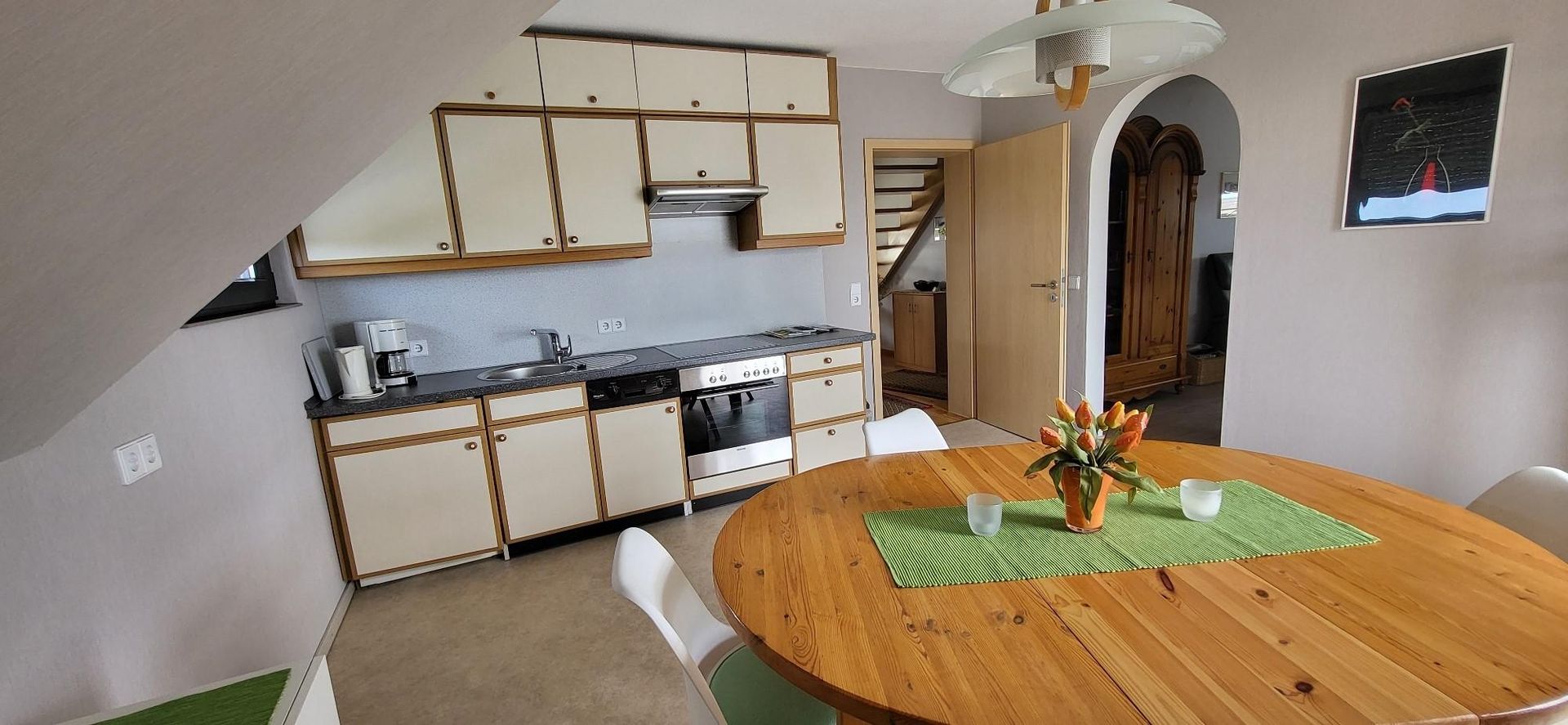 Our holiday flat on the Eifel Pilgrims' Cycle Route is located in the small village of Minderlittgen in the holiday region of Wittlich Stadt & Land between the Maaren and the Moselle. It is an ideal starting point for beautiful cycling and hiking tours to the Volcanic Eifel and the Moselle. The Eifel Pilgrims' Cycle Path runs right on our doorstep. The Maare-Mosel cycle path, the Eifelsteig and its adventure loops, as well as the well-marked hiking trails of the Eifelverein around Minderlittgen, offer a variety of possibilities for organising your stay. The shopping town of Wittlich is 6 km away and can also be easily reached by public transport. Trier, the oldest city in Germany, is about 40 minutes away by car. From Minderlittgen you have access to the A1/A48 in about 9 km and to the A60 in 7 km.