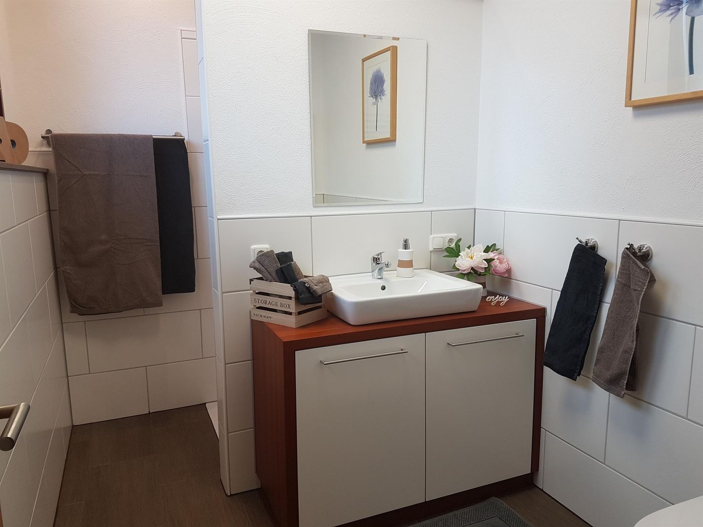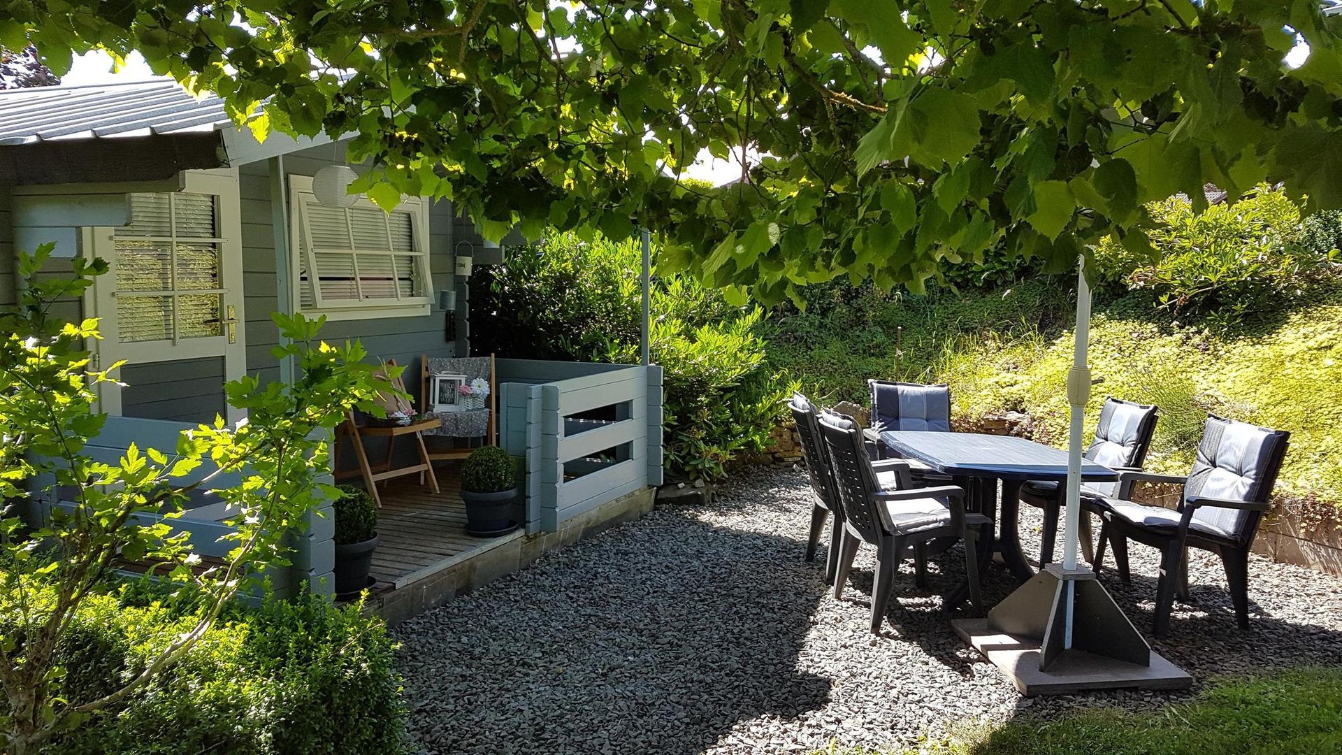 With about 60 sqm, divided into a master bedroom, a children's bedroom, a bathroom with shower, a cosy living room as well as a generously fully equipped kitchen, the flat offers space for 4 people. The south-facing garden with a view over the village invites you to linger.