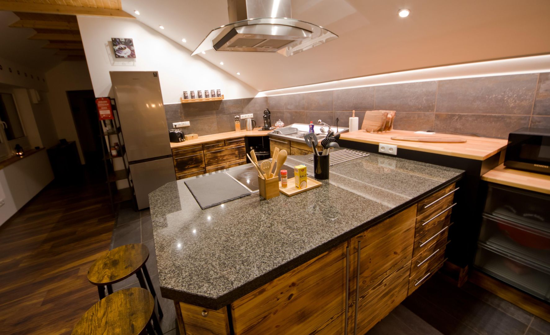 The ‘Cinema Forst holiday flat’, which was completely renovated in 2024, has approx. 105m² of living space and a garden of around 360m² with barbecue facilities and an outdoor shower for private use. A dedicated home cinema with a 108-inch screen and powerful sound system, as well as a private library with over 1000 books, make for an exceptional holiday. Underfloor heating, bathtub, walk-in shower and a starry sky in the bedroom make dreams come true.