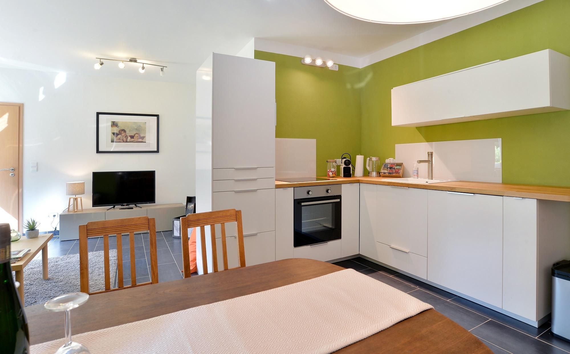 A lovingly in detail furnished vacation apartment to feel good directly at the Brohlbach with adjoining forest. Here you can let your soul dangle and enjoy the peace and quiet. It is a granny apartment with private entrance and parking space directly in front of the accommodation. The apartment impresses with an open living and dining area, a bedroom and a bathroom. The living room offers everything you need for a carefree vacation. An open living and dining area. This has a large sofa, TV and a dining area. A kitchen equipped with a ceramic hob, oven, fridge-freezer, Nespresso machine, kettle and dishwasher. In the bedroom there is a large, comfortable double bed (190x200) and in the bathroom there is a shower with double washbasin and toilet. You can start hiking and biking tours at the Brohlbach directly in front of the house. There are many places of interest nearby.