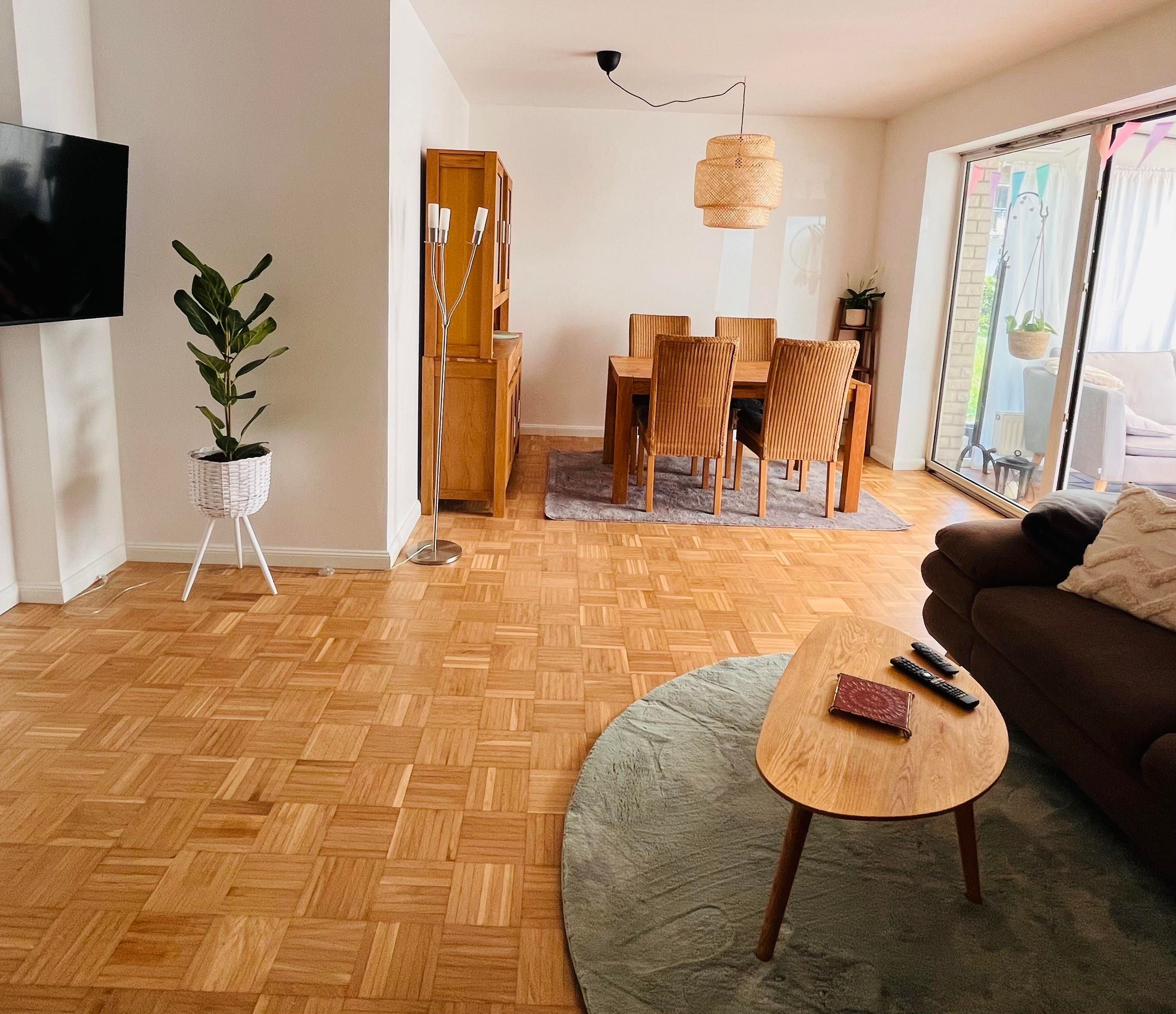 Our spacious yet very cozy apartment was completely renovated in 2023/2024. It has two bedrooms, which are furnished with comfortable double beds (1.80 m and 1.40 m). The spacious bathroom has a bathtub and a floor-to-ceiling shower. Hand and shower towels, shampoo and shower gel and a hairdryer are also provided here.