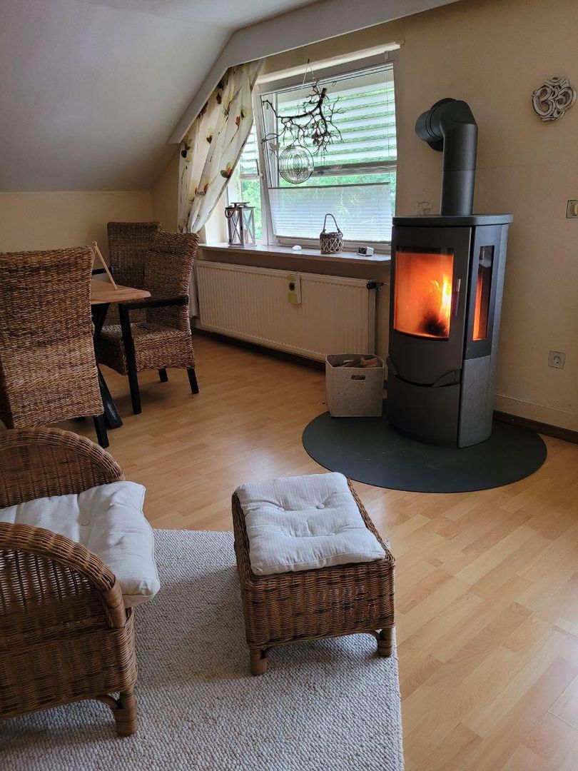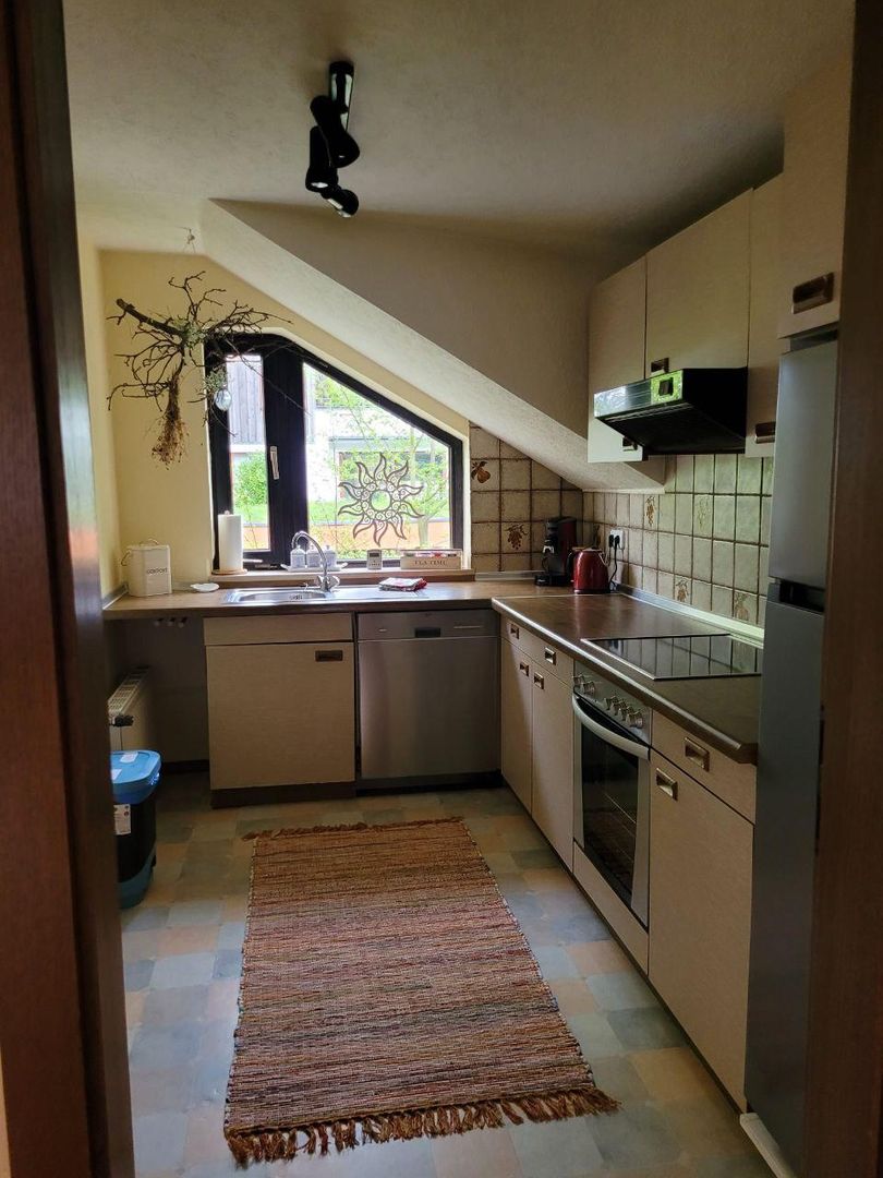 The attic apartment can be reached via two floors and is located in the house we live in ourselves. We, Uli and Birgit, live here with our two cats and a small dog.