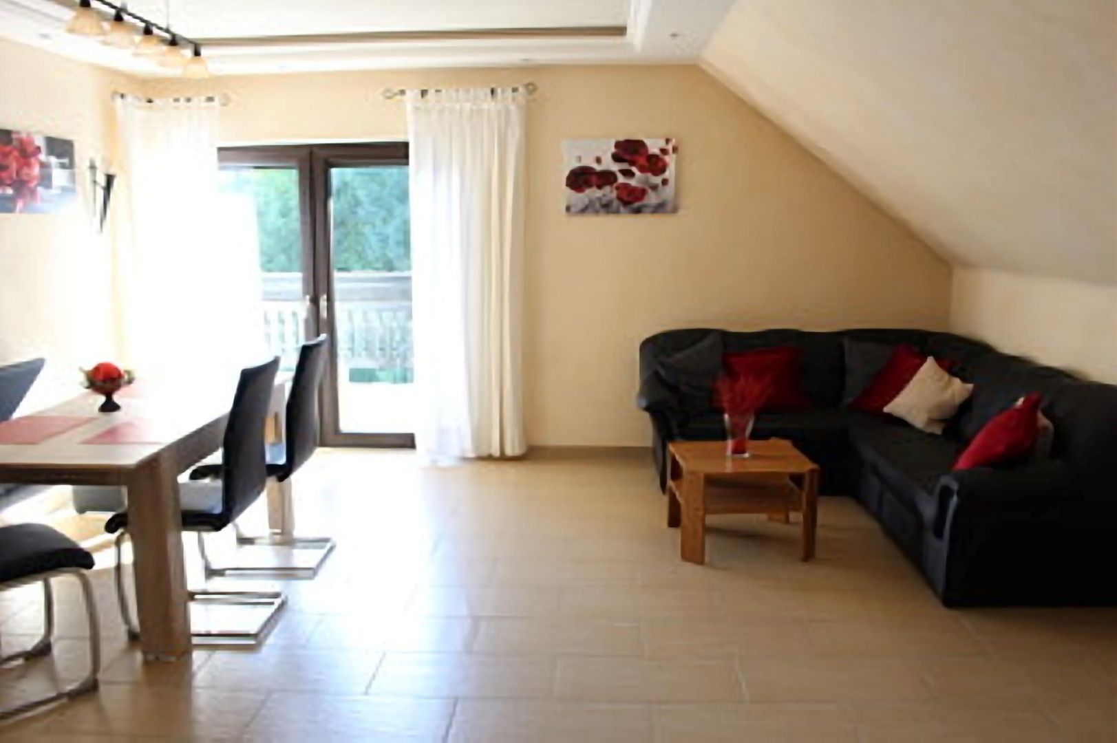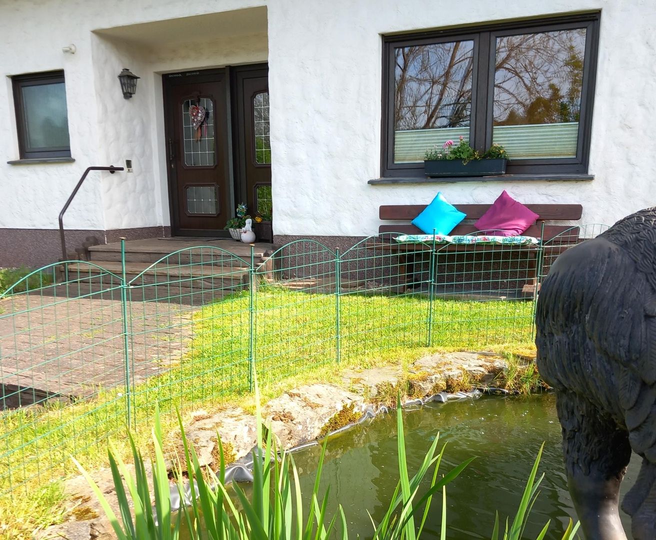 In the heart of the Volcanic Eifel, we look forward to welcoming you!The Volcanic Eifel is an ideal oasis for nature lovers, those seeking relaxation and tranquillity, and those who want to combine cultural and natural experiences.The holiday flat is situated in a quiet location on the outskirts of the village. The 30m² sun terrace by the koi pond and the homely ambience guarantee pleasant days of relaxation for your private time-out.Your bright, spacious and barrier-free holiday home Eifelauszeit Am Vulkanweg is suitable for max. 4 persons and 1 small child.Furthermore, a fully equipped kitchen with everything you need for a pleasant stay awaits you.A small four-legged friend (max. 10 kg) is welcome after prior consultation with your landlords.Your holiday home Eifelauszeit Am Vulkanweg is barrier-free.Smoking is not permitted.The holiday flat is located directly on the east/west long-distance hiking trail of the Eifelverein - Neuwied to Gerolstein -, also in the immediate vicinity of the Eifelsteig and Lieserpfad (1km). You have an ideal starting point for interesting route and circular hikes, from from easy to more demanding. On request, your hosts will provide you with detailed route suggestions, regional maps and insider tips for hiking and cultural excursions to suit all tastes.Give your car a break during your stay! Regional bus stop approx. 50m away.Equipment of the holiday apartment:Living room - three areas- three and two seating areas - CD-Player - radio - SAT TV - showcase with game collections - tea time corner with 2 armchairs and table with garden view - Relaxation corner with sofa bed 160x200Bedroom- double bed 180x200 - dresser's wardrobe - children's cot - Sitting area - Mirror - radio alarm clockKitchen- electric cooker with oven - refrigerator - freezer - dishwasher - coffee maker - microwave oven - toaster - water boiler - dishes - dish towels - basic equipment on arrival: two dishwasher tabsBathroom- shower - bathtub - bidet - bathroom cabinet - Mirror and vanity mirror - WC - hairdryer - Toilet paperGuest WC Terrace - 30 m² - 4 garden chairs, table - 2 sun loungers - parasol - barbecue facilitiesGeneral- 1 parking space at the house - Bicycle parking space, lockable - WLAN - Floor heatingSuitable for - Families - walkers - Non-smokers - holiday with baby - on request with small dog