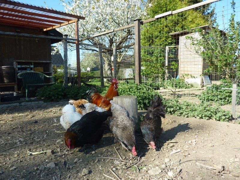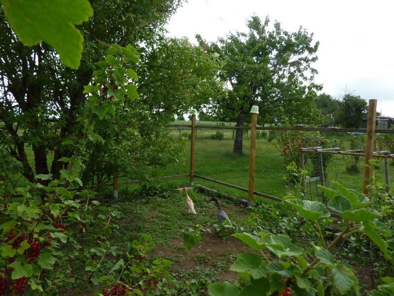 There are ducks, chickens and dogs in our garden. There are two donkeys and ponies in the neighboring meadows.