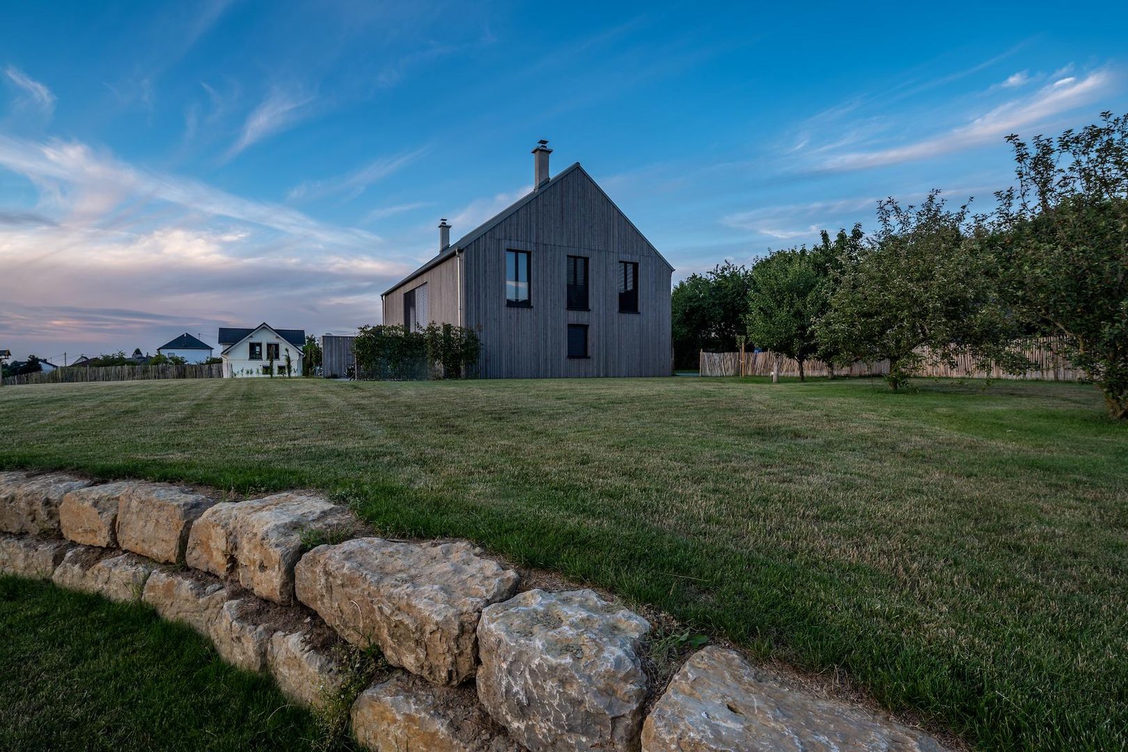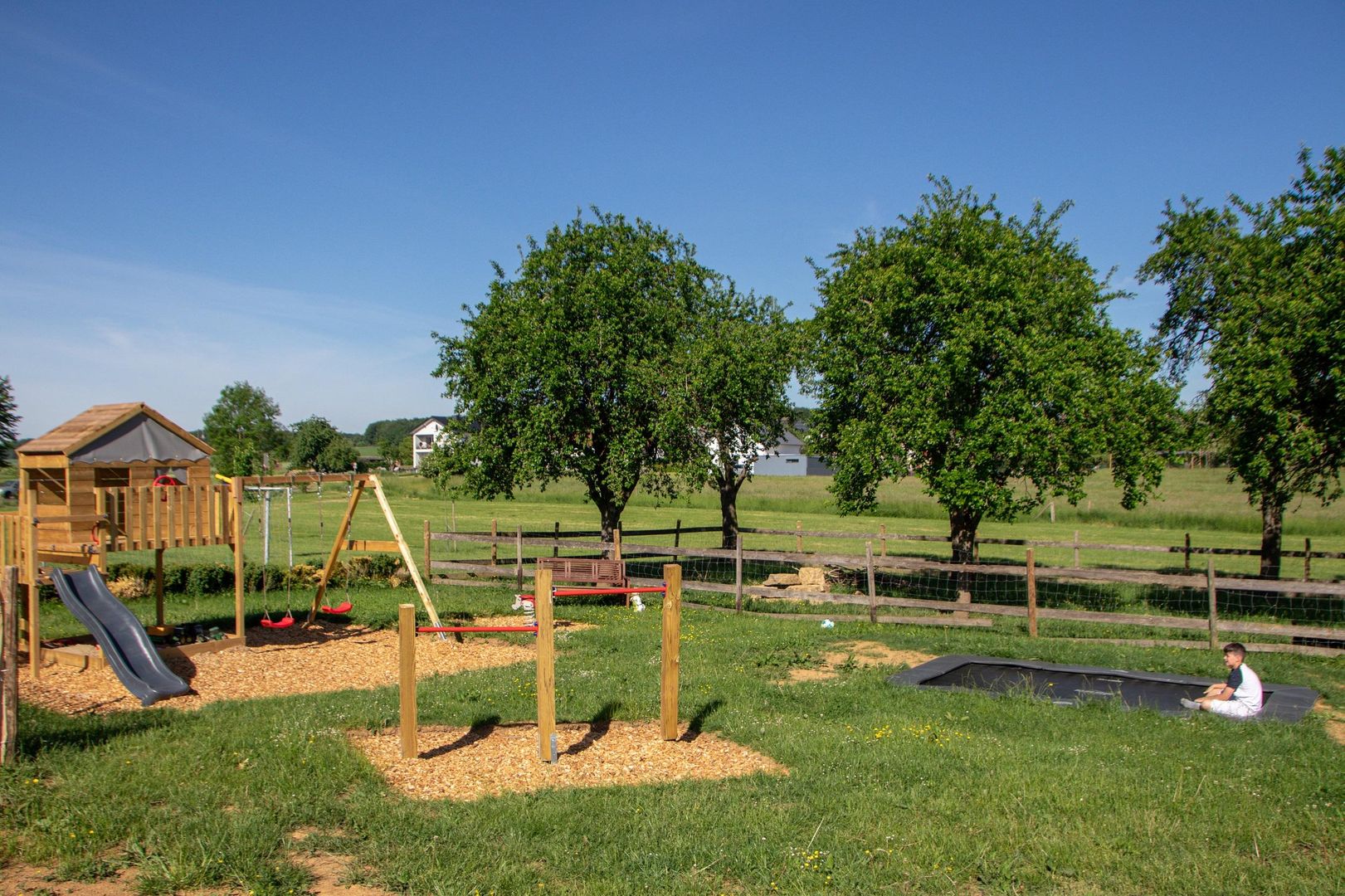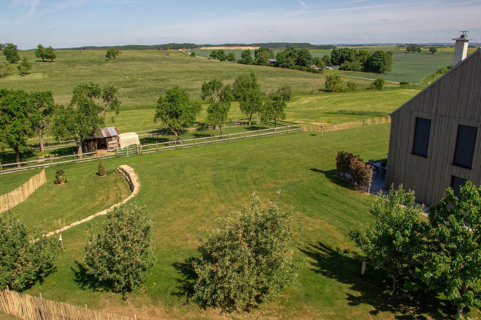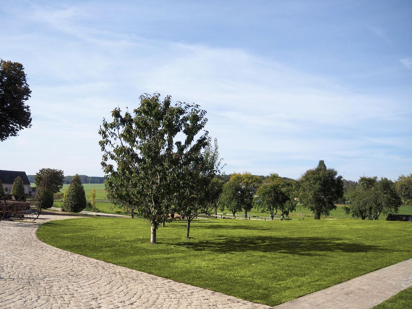 surrounded by meadows, fruit trees and fields,