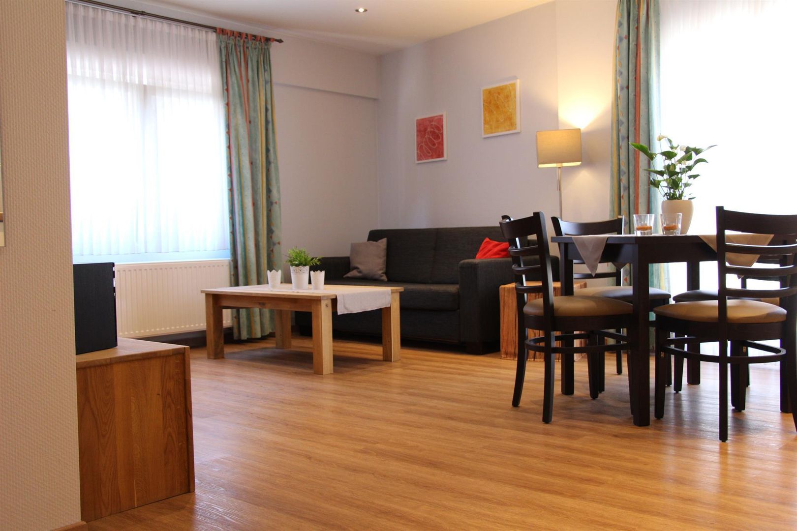 Our third apartment is behind the historic castle gate. This is about 45 m² and has a kitchen, a bedroom, a bathroom and is also on the first floor.