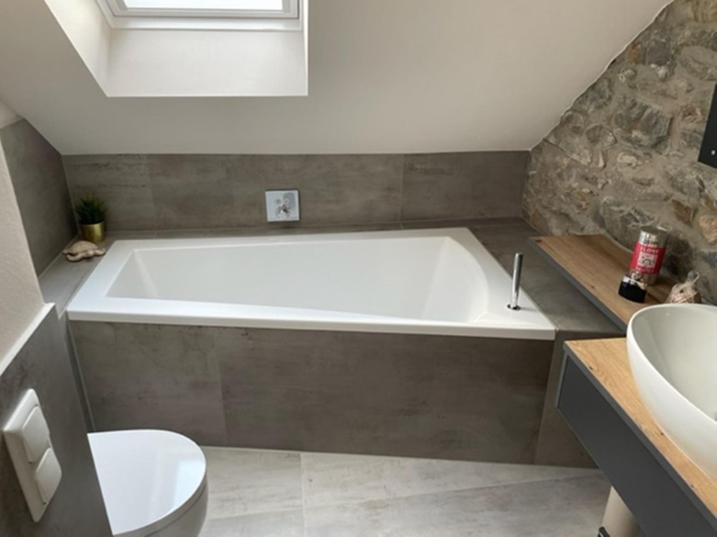 Modern bathroom with shower, bathtub, toilet and sink (first floor)